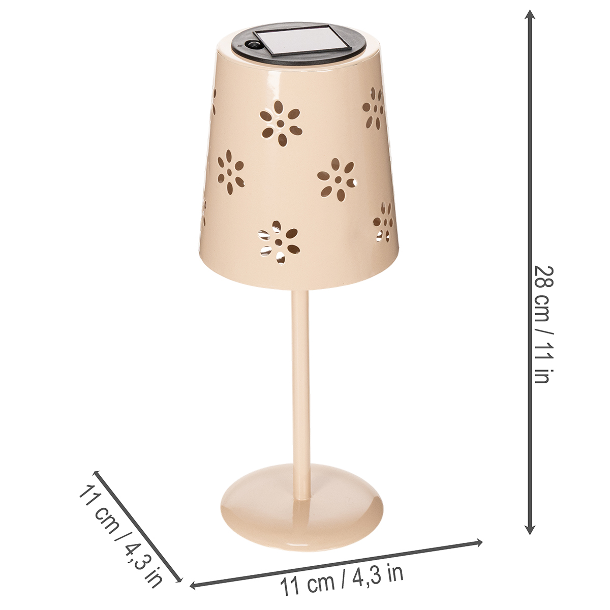 Esta luminária solar para exterior é verdadeiramente versátil. Com 28 cm de altura, seu design encantador valoriza qualquer canto – seja uma mesa de jardim, um patamar de escada ou um muro baixo em seu espaço ao ar livre. A luz LED branca quente proporciona uma iluminação aconchegante, sem ofuscamento, mas suficientemente brilhante para criar uma atmosfera agradável. A construção de alta qualidade em metal robusto e o belo acabamento em tons de bege e rosa a tornam uma peça decorativa duradoura.