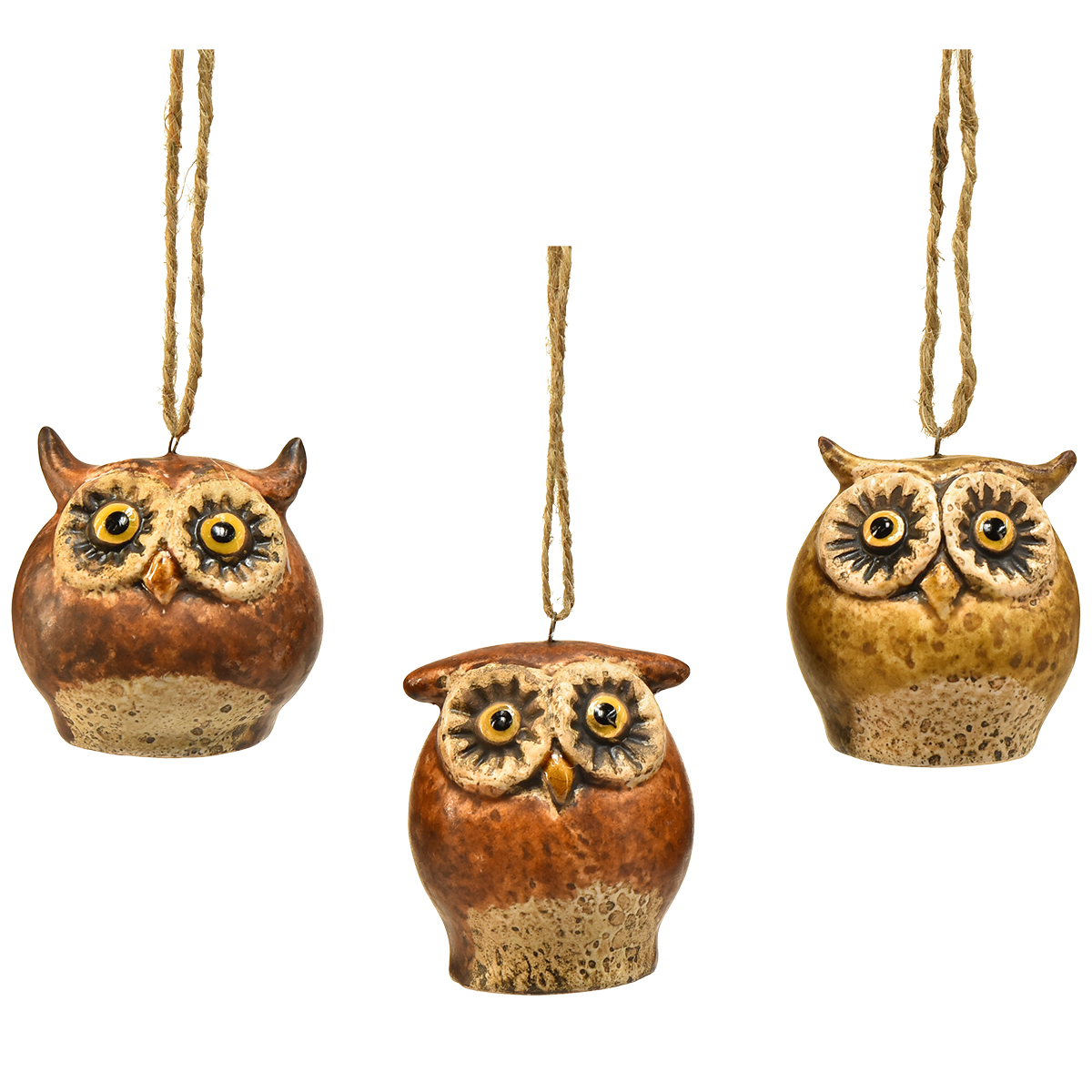 Adoráveis pingentes de coruja - tons rústicos de marrom, 5,6 cm - decoração perfeita para outono e Natal - pacote com 3