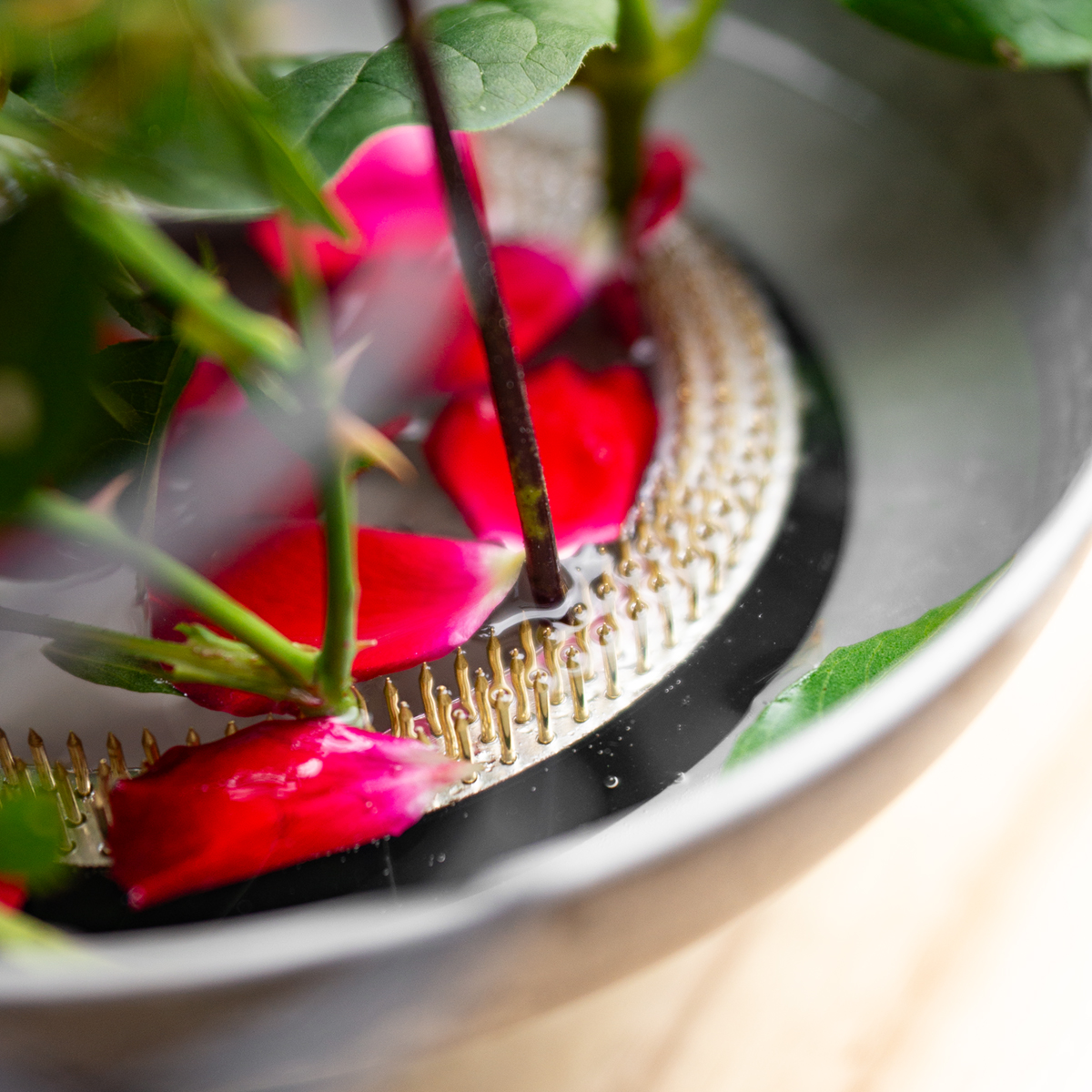 Kenzan clássico em formato de anel – ouriço redondo em forma de flor feito de latão para arranjos perfeitos