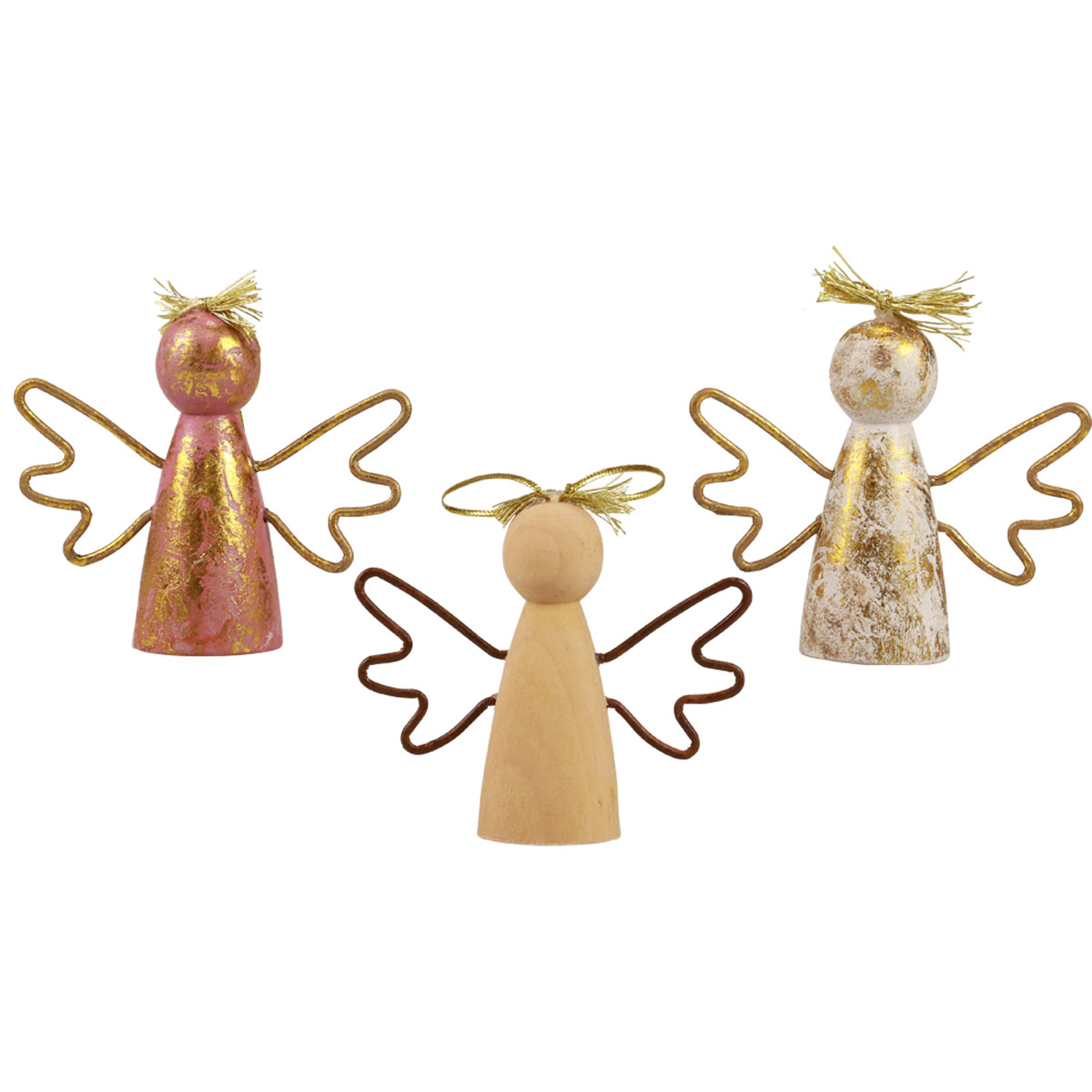 Dê à sua árvore de Natal um toque vintage moderno com os anjos de Natal originais feitos de madeira e metal. Os anjos de madeira também vão impressionar quando fixados em vários cabides decorativos no meio de uma guirlanda!