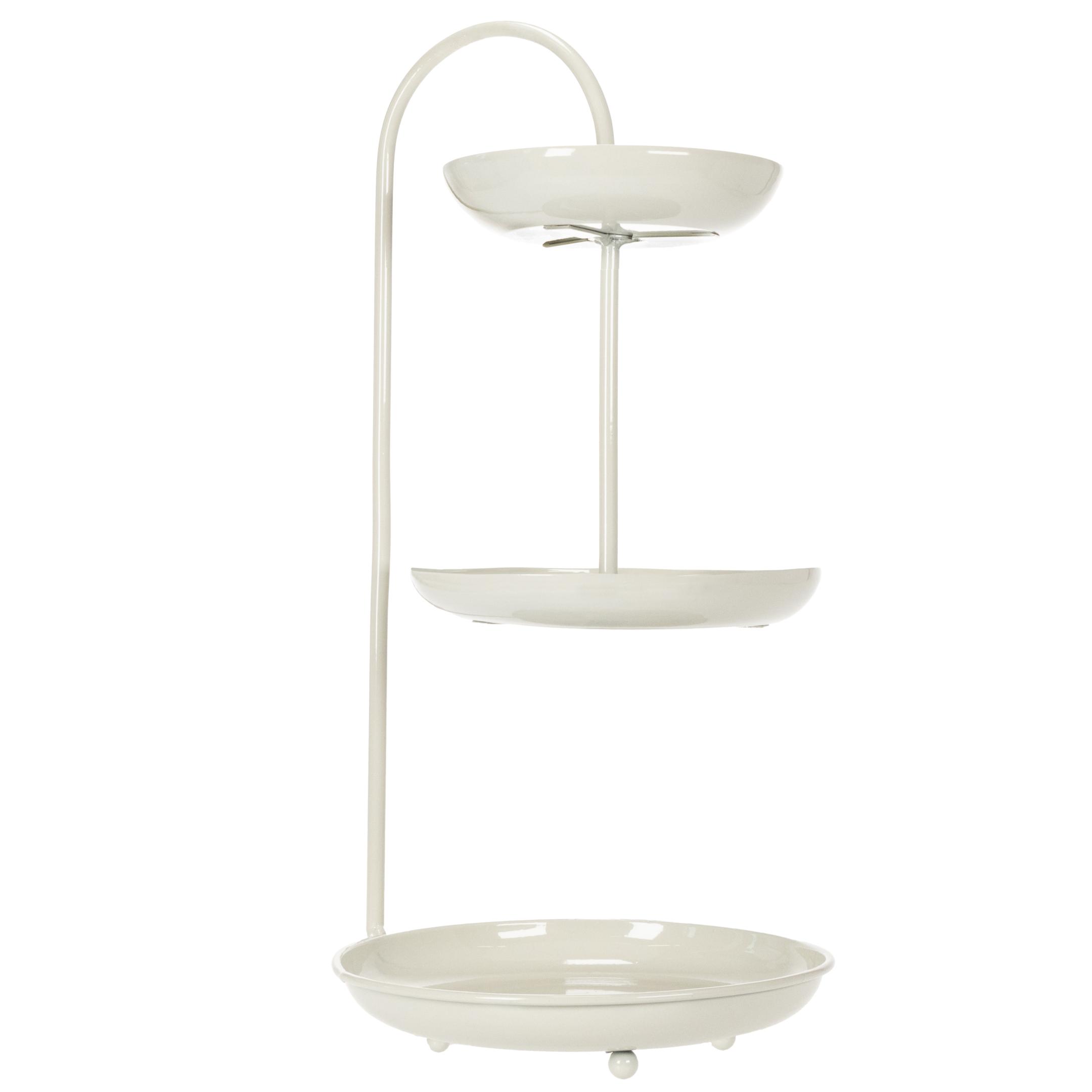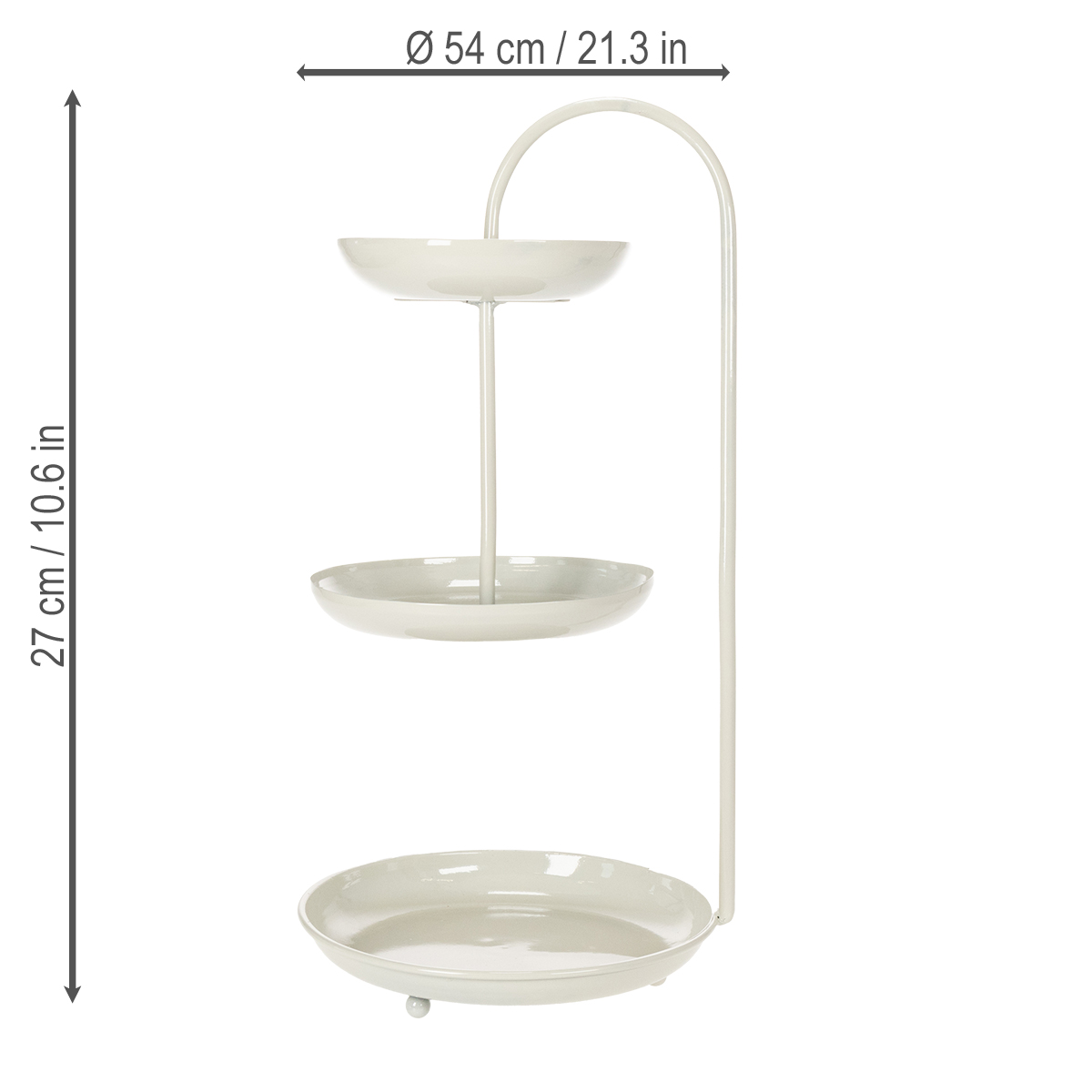 Com seu visual moderno e elegante, este suporte de três andares se adapta a qualquer ambiente e adiciona um toque especial à sua decoração. Os três andares têm diâmetros diferentes (26 cm, 23 cm e 18 cm) e oferecem espaço para alimentos embalados ou elementos decorativos. A paleta de cores neutras facilita a combinação com outros estilos de decoração – seja minimalista, escandinavo ou até mesmo boho. O suporte também é prático: fácil de limpar, compacto e resistente. Perfeito para usar na mesa da sala de estar, como centro de mesa em um casamento ou para festas temáticas! Observação: não é adequado para alimentos sem embalagem, sendo ideal para chocolates, cupcakes em forminhas ou figuras decorativas. Combine o suporte com outros itens da Floristik24, como um elegante abajur ou vasos de flores que combinem, para completar perfeitamente o seu ambiente!