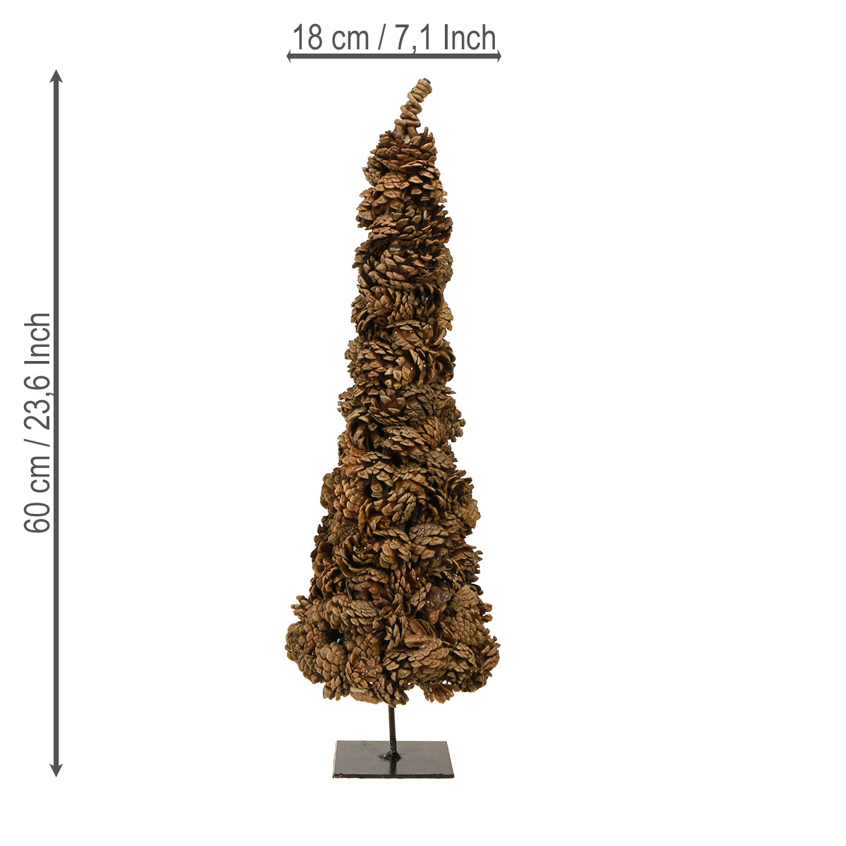 Feita com pinhas de alta qualidade, madeira e detalhes finos em metal e tecido, esta árvore de Natal de pinhas é um verdadeiro chamariz. Com aproximadamente 60 cm de altura e 16 cm de diâmetro, é compacta o suficiente para caber até em espaços pequenos. Ideal para mesas, aparadores e peitoris de janelas!