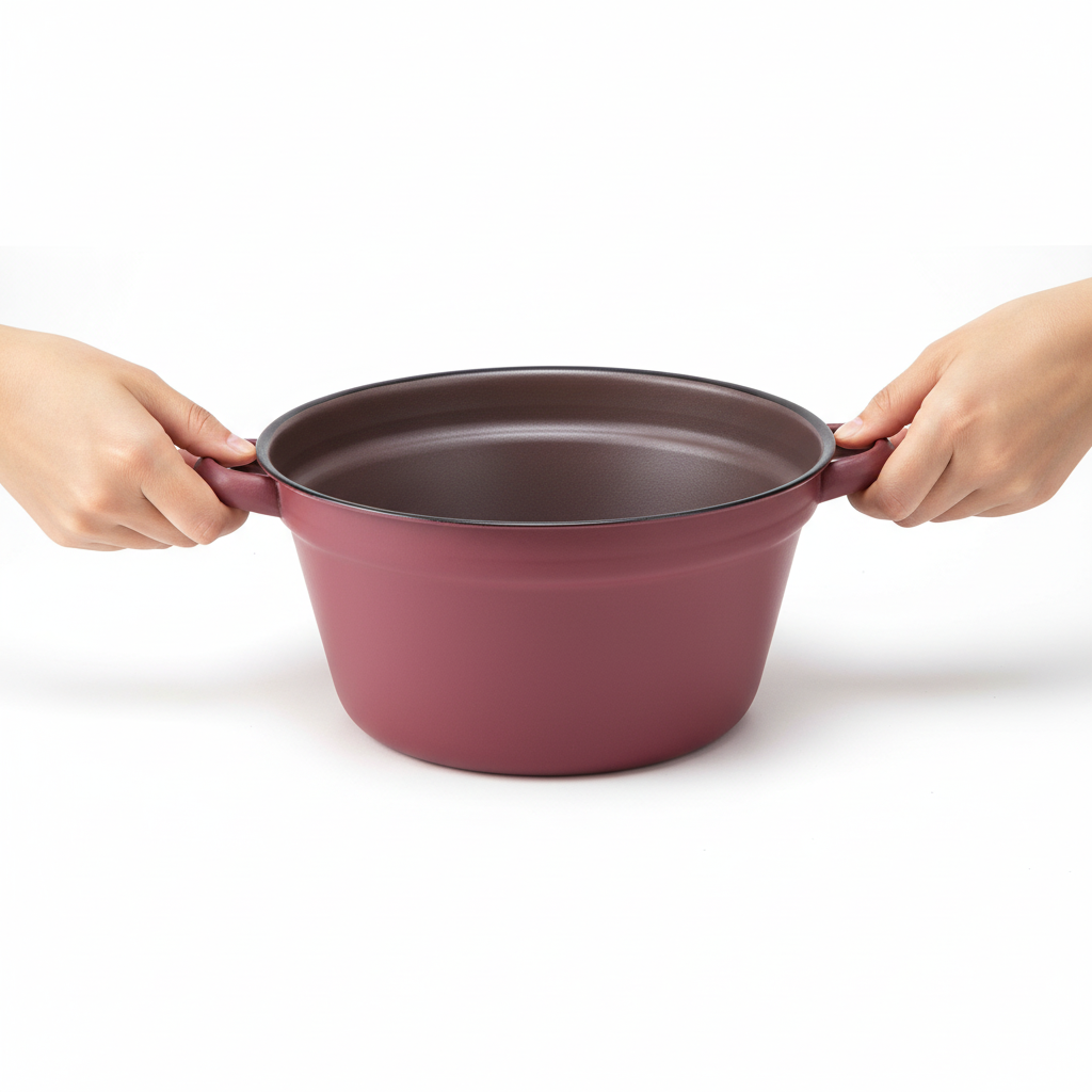 - Recipiente redondo de metal com alças resistentes