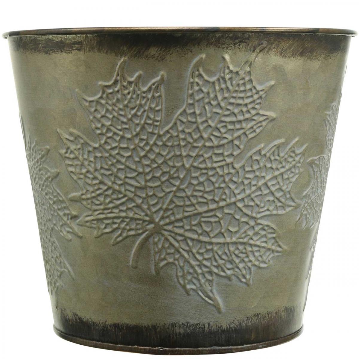 Balde para plantas com decoração de folhas, vaso de metal, outono dourado Ø18cm Alt.17cm