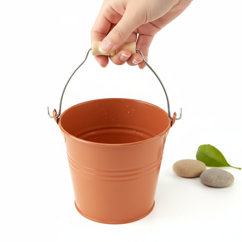 Além do formato clássico, o balde possui uma alça móvel, à qual, como destaque, é fixada uma alça de madeira sem tratamento. Isso dá ao vaso decorativo uma bela aparência vintage que se adapta harmoniosamente a qualquer lugar.