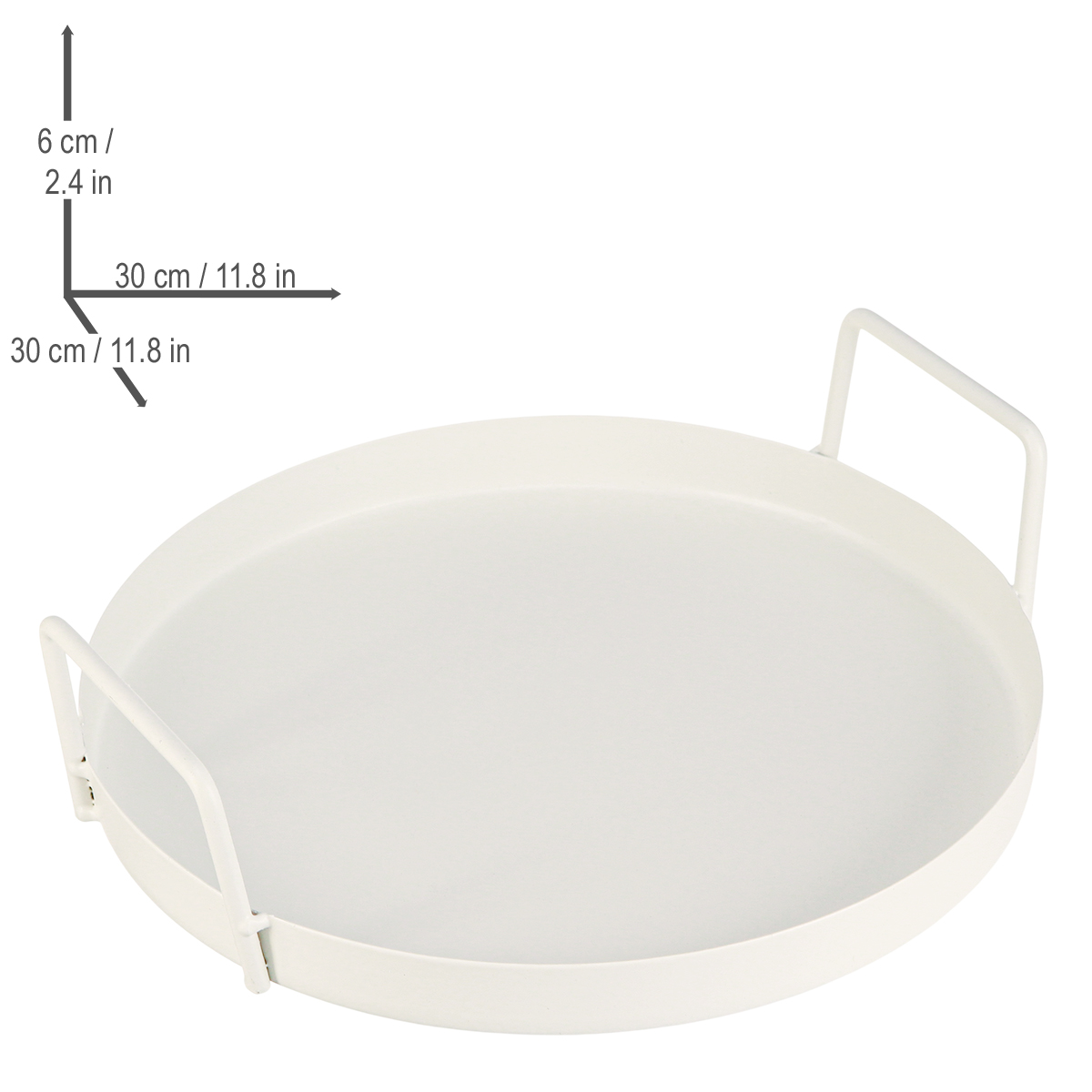 Com 30 cm de diâmetro e 3 cm de altura, esta bandeja redonda branca oferece amplo espaço para apresentar bebidas, petiscos ou arranjos decorativos com segurança. As alças altas e robustas facilitam o transporte e tornam o serviço muito mais prático – seja para um jantar no jardim ou para a próxima festa de aniversário. A borda ligeiramente elevada também evita que copos ou pratos deslizem. Simplesmente genial! O metal branco e liso não só ostenta uma elegância discreta, como também é excepcionalmente fácil de limpar. Basta um pano úmido para restaurar a bandeja ao seu brilho original. Combine a bandeja com velas delicadas, elementos decorativos rústicos de madeira ou flores frescas: sua cor neutra permite que sua criatividade flua livremente. Ela fica particularmente impressionante quando combinada com outros acessórios brancos ou em contraste com móveis mais escuros. Seja para uso doméstico ou profissional, esta bandeja é verdadeiramente versátil. Você pode usá-la como bandeja de cozinha para organizar temperos ou utensílios, ou como um elemento decorativo elegante. É perfeita até mesmo como base para pequenos projetos de faça você mesmo. Quem aprecia o minimalismo vai adorar: funcionalidade aliada a um design clean!