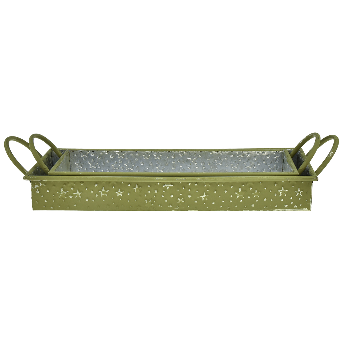 A bandeja decorativa para o Natal na cor verde com estrelas de diversos tamanhos não é apenas funcional, mas também um destaque visual. Feita em metal de alta qualidade e decorada com um padrão de estrela, a bandeja oblonga é perfeita como base para as suas decorações festivas. Os dois tamanhos oferecem uma ampla gama de utilizações e as alças robustas facilitam a reorganização.
