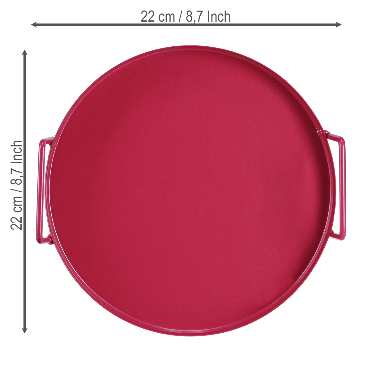 Esta bandeja redonda de metal em vermelho vibrante, com 22 cm de diâmetro, não só chama a atenção, como também é excepcionalmente funcional. As alças foscas garantem uma pegada segura e tornam a bandeja prática e conveniente. Seja para servir bebidas e petiscos aos seus convidados com elegância ou para exibir suas plantas favoritas, esta bandeja vermelha sempre causa uma ótima impressão. A superfície robusta de metal é fácil de limpar e possui uma durabilidade impressionante – simplesmente uma companheira confiável em qualquer situação.