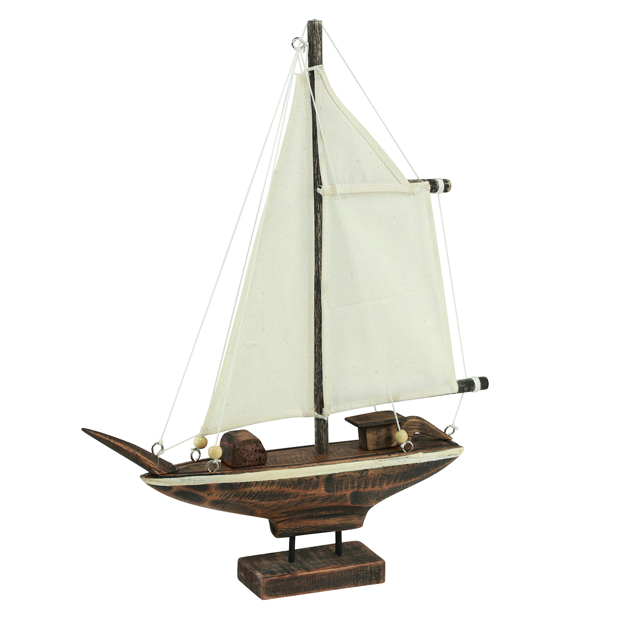 Barco à vela decoração navio madeira de pinho marrom 32×5×41cm