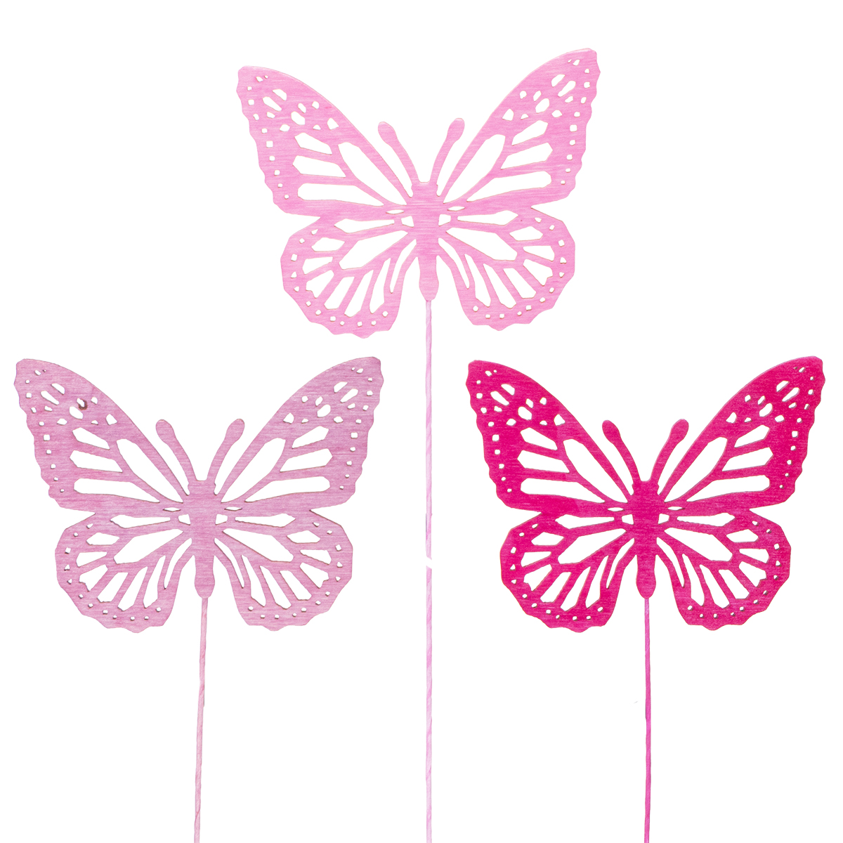 Borboletas decorativas em hastes, delicadas para enfeitar mesas e vasos, 8 cm, 18 peças.