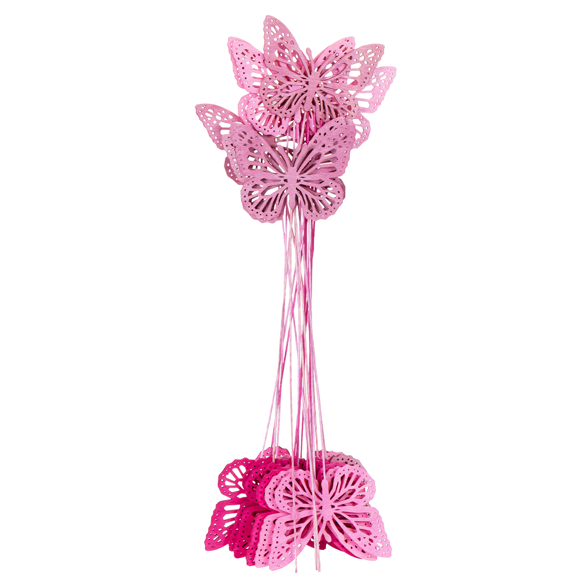 Traga a primavera para sua casa! Estas encantadoras borboletas decorativas em hastes são perfeitas para adicionar um toque alegre e divertido à sua casa ou jardim. Sejam usadas como decoração de mesa na primavera, como destaques em vasos ou como adições criativas a arranjos florais, estas delicadas borboletas garantem um toque de estilo. Você adora decorações leves e coloridas? Então você vai adorar estas borboletas em tons suaves de rosa. Seus detalhes intrincados e o material natural as tornam não apenas atraentes, mas também incrivelmente versáteis.