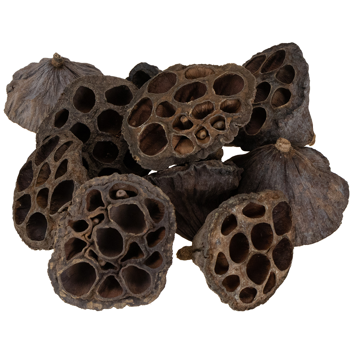 Os pistões de lótus em forma cônica foram secos, mas alguns ainda contêm as sementes e são 100 peças em um saco plástico. Por se tratarem de produtos naturais, os tamanhos podem variar. As cápsulas têm aproximadamente 3,5 a 7 centímetros de comprimento e cada uma tem um diâmetro de 3 a 6 centímetros.