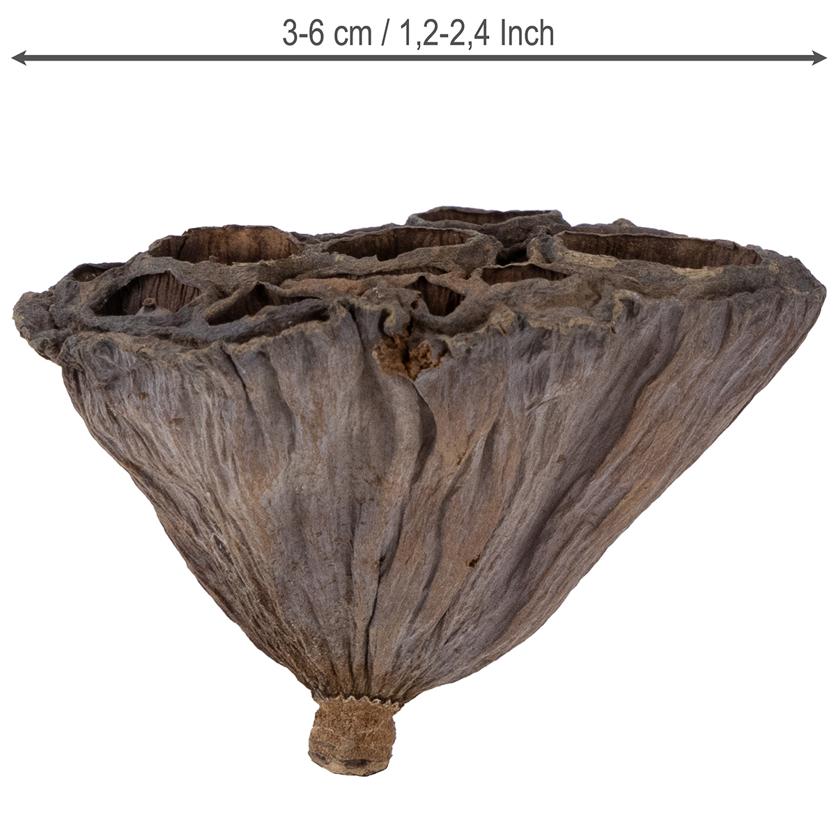 Os pistões de lótus em forma cônica foram secos, mas alguns ainda contêm as sementes e são 100 peças em um saco plástico. Por se tratarem de produtos naturais, os tamanhos podem variar. As cápsulas têm aproximadamente 3,5 a 7 centímetros de comprimento e cada uma tem um diâmetro de 3 a 6 centímetros.
