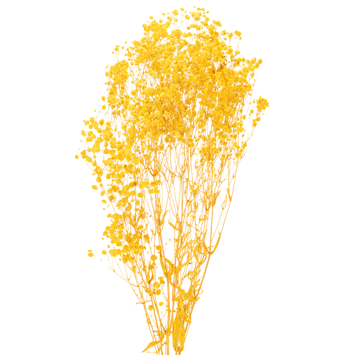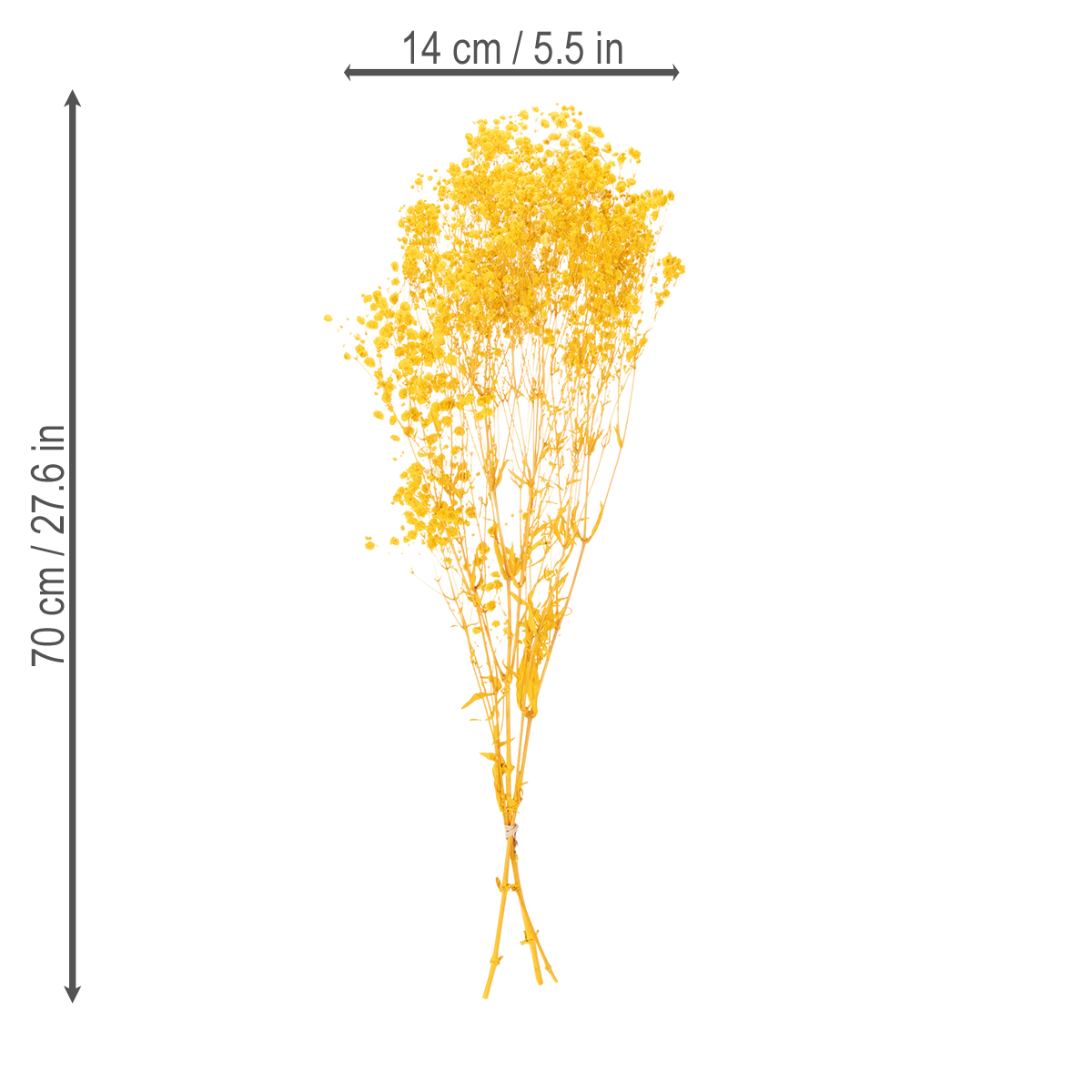 A gipsófila simboliza leveza e elegância, e neste buquê, ela adiciona um toque alegre de amarelo quente. Feito com flores reais, cuidadosamente secas, este buquê é ideal para ambientes internos ou externos protegidos.