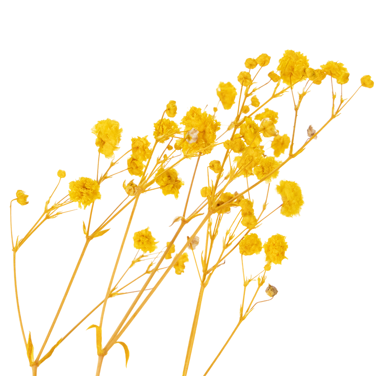 Compre um buquê de flores secas – gipsofila amarela, perfeita para decorar a mesa.