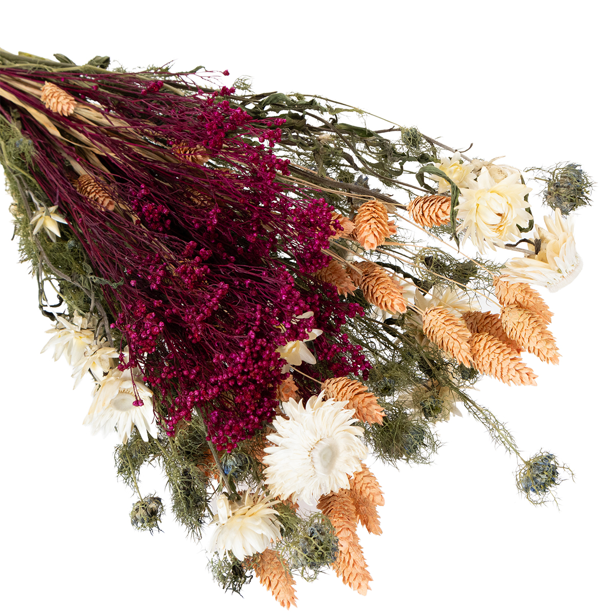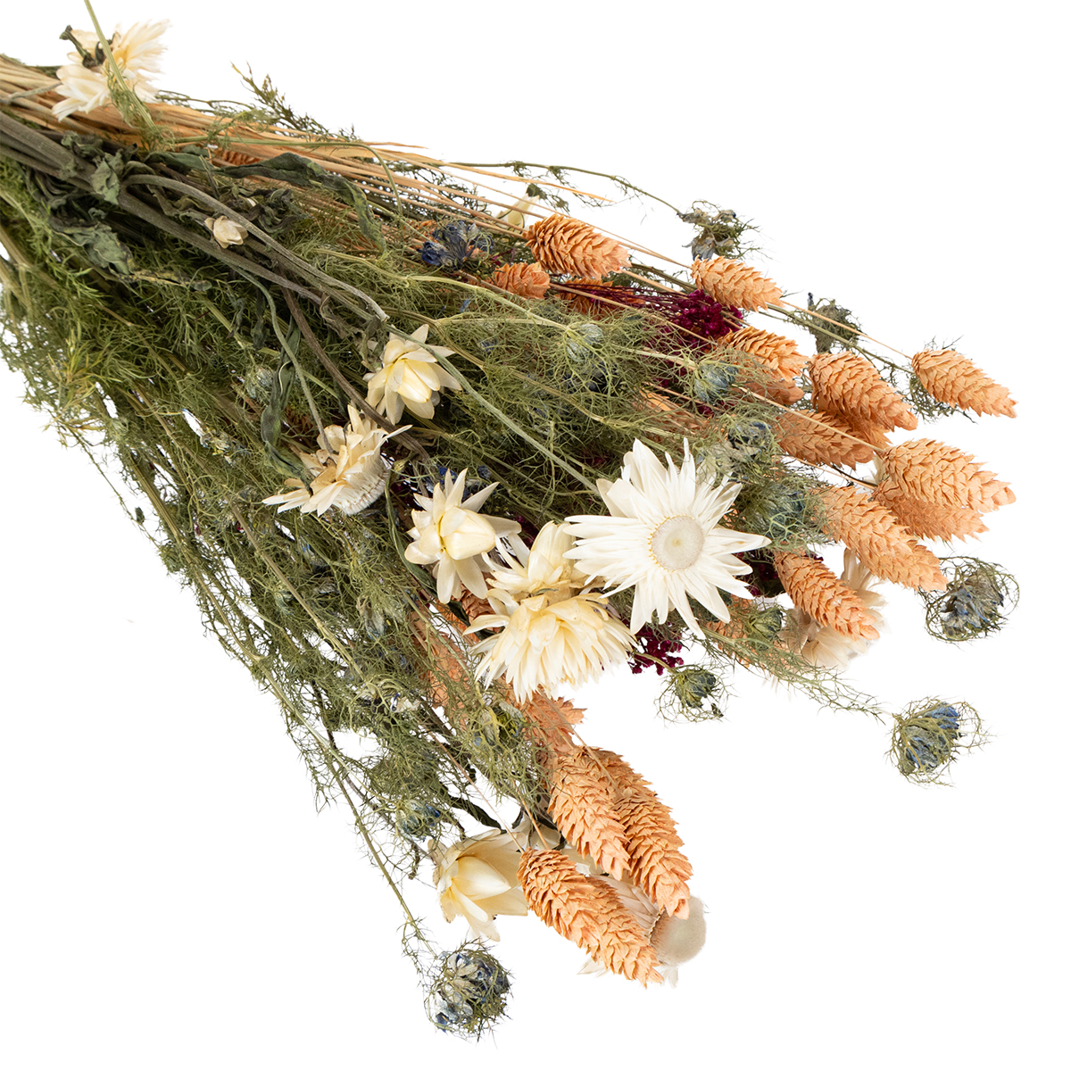 As flores secas sempre simbolizaram permanência e beleza contemplativa. Seu esplendor duradouro nos lembra da importância da elegância atemporal e da conexão com a natureza. Elas são uma alternativa encantadora às flores frescas e conferem a qualquer ambiente um aconchego e uma sensação autêntica de calor.