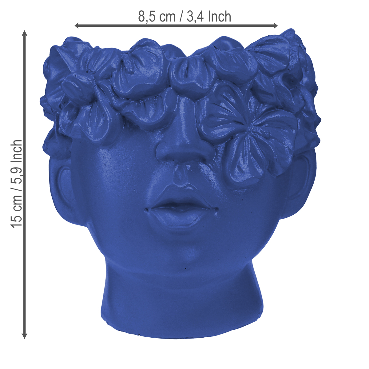 Cabeça de planta Busto de poliresina Plantador Azul 13,5×13×14cm
