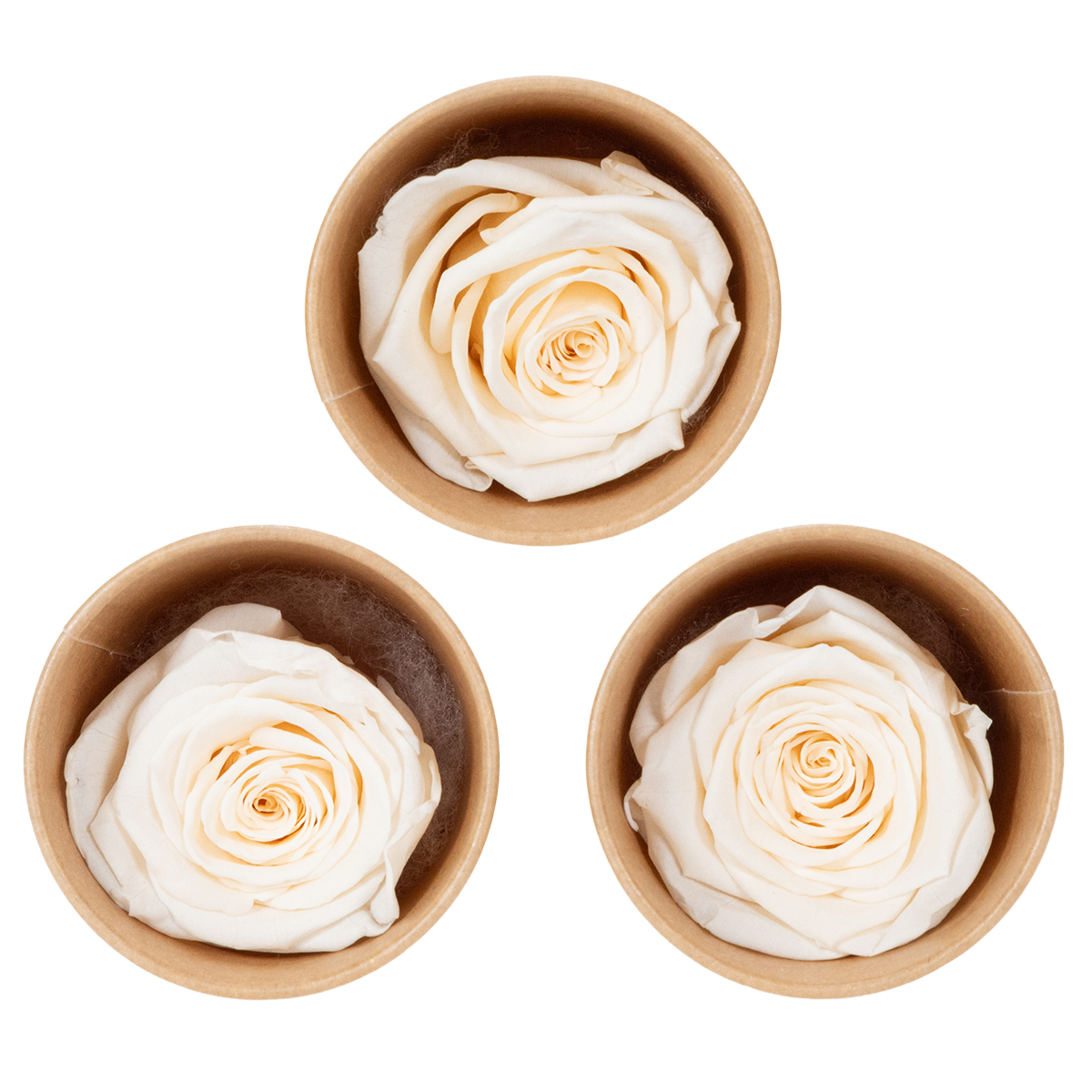 Não é fascinante como as flores podem criar uma atmosfera especial? Infelizmente, muitas murcham muito rapidamente. É aí que entram as nossas rosas preservadas! Estas belezas cremosas, com 4 cm de diâmetro e 5 cm de altura, permanecem tão perfeitas como no dia em que foram colhidas, graças ao seu processo especial de preservação – e duram muitos meses. Perfeitas para quem quer desfrutar dos seus arranjos florais por mais tempo do que apenas um instante.