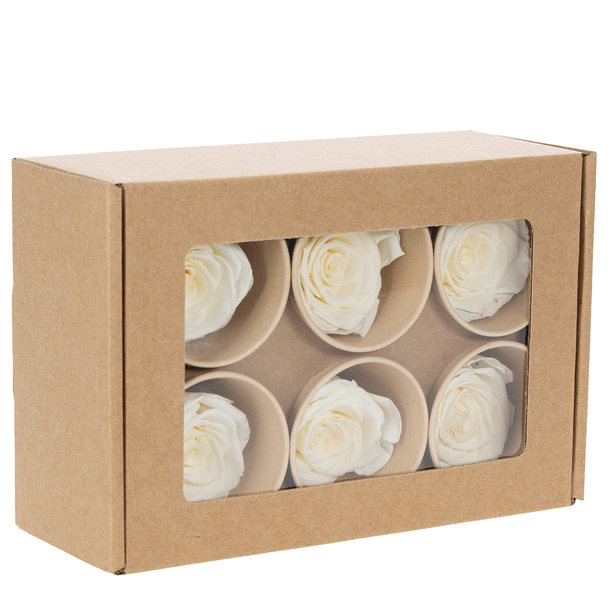 Imagine um casamento onde essas belezas duradouras servem como decoração de mesa. Sem murchar, sem precisar de reparos. Tudo permanece impecável até a última dança. Mas essas rosas brancas também criam uma atmosfera especial em sua casa. Arrume as seis em uma bela tigela ou combine-as com flores secas para uma apresentação única. Para um visual mais natural, coloque as rosas em recipientes de vidro. Elas ficam simplesmente deslumbrantes quando combinadas com luzes de fada para um toque sutil de glamour.