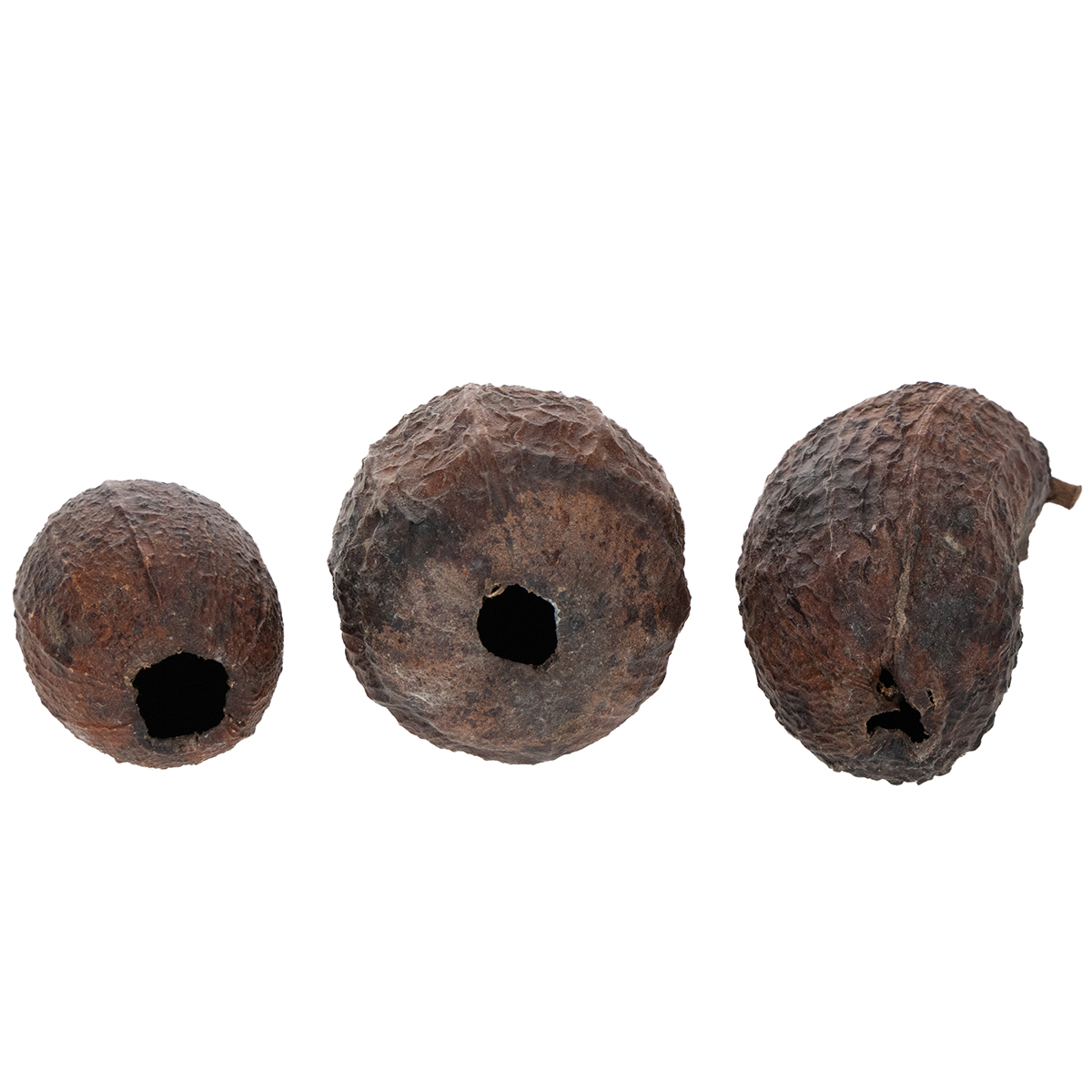 Através do buraco você pode ver maravilhosamente o interior da fruta. Como resultado, o fruto oval de madeira cabe perfeitamente em um café, uma confeitaria e também em uma confeitaria como uma decoração atmosférica e sensacional. Claro, você também pode decorar seu estande de exposição, bar de coquetéis ou sua recepção com esta planta de cacau. E principalmente em uma chique tigela de madeira, essa decoração sul-americana sabe pontuar e até enfeita sua cômoda e a mesa da sala de sua casa!