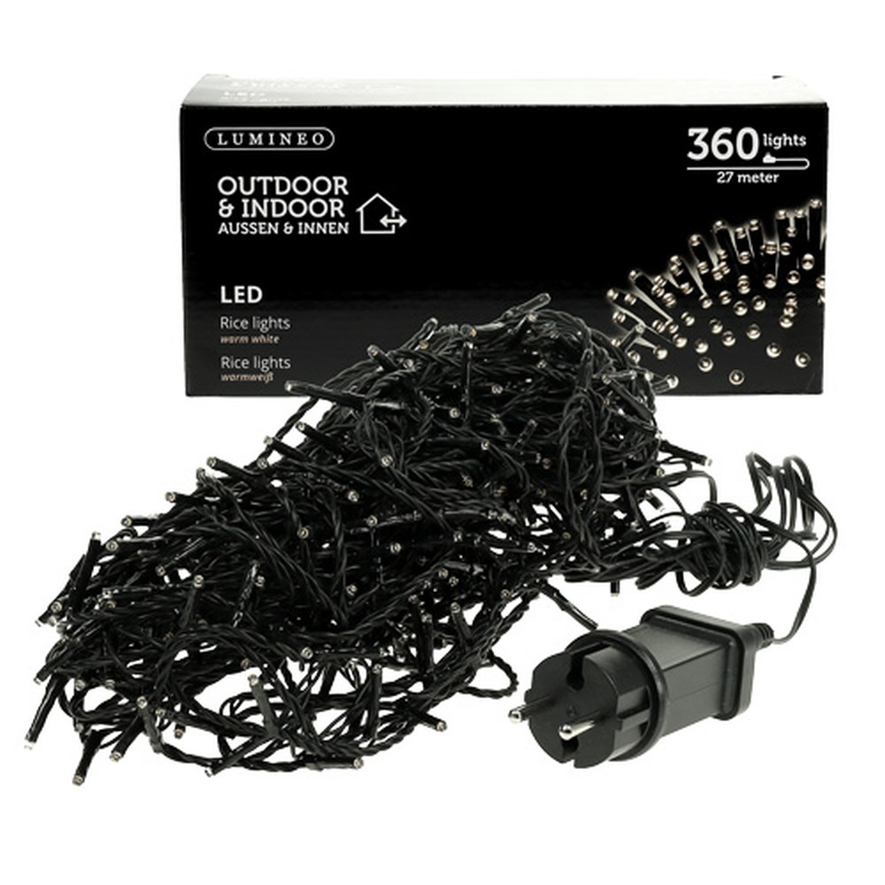 Cadeia de luz de arroz LED 360 27m branco quente para fora/dentro