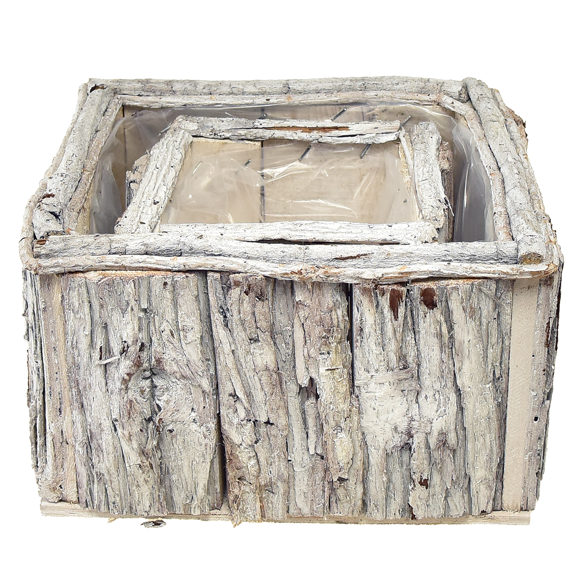 Caixa para plantas madeira com casca branco natural 17/24cm conjunto de 2 peças