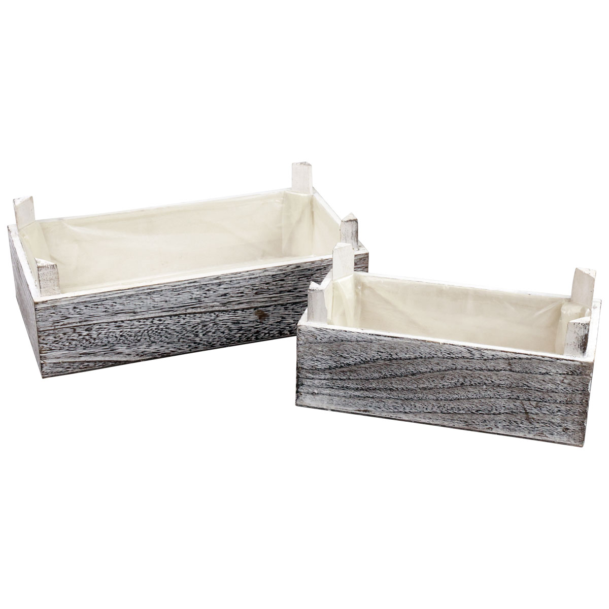 Caixa retangular de madeira para plantas branqueada 32x17/25x13cm conjunto de 2