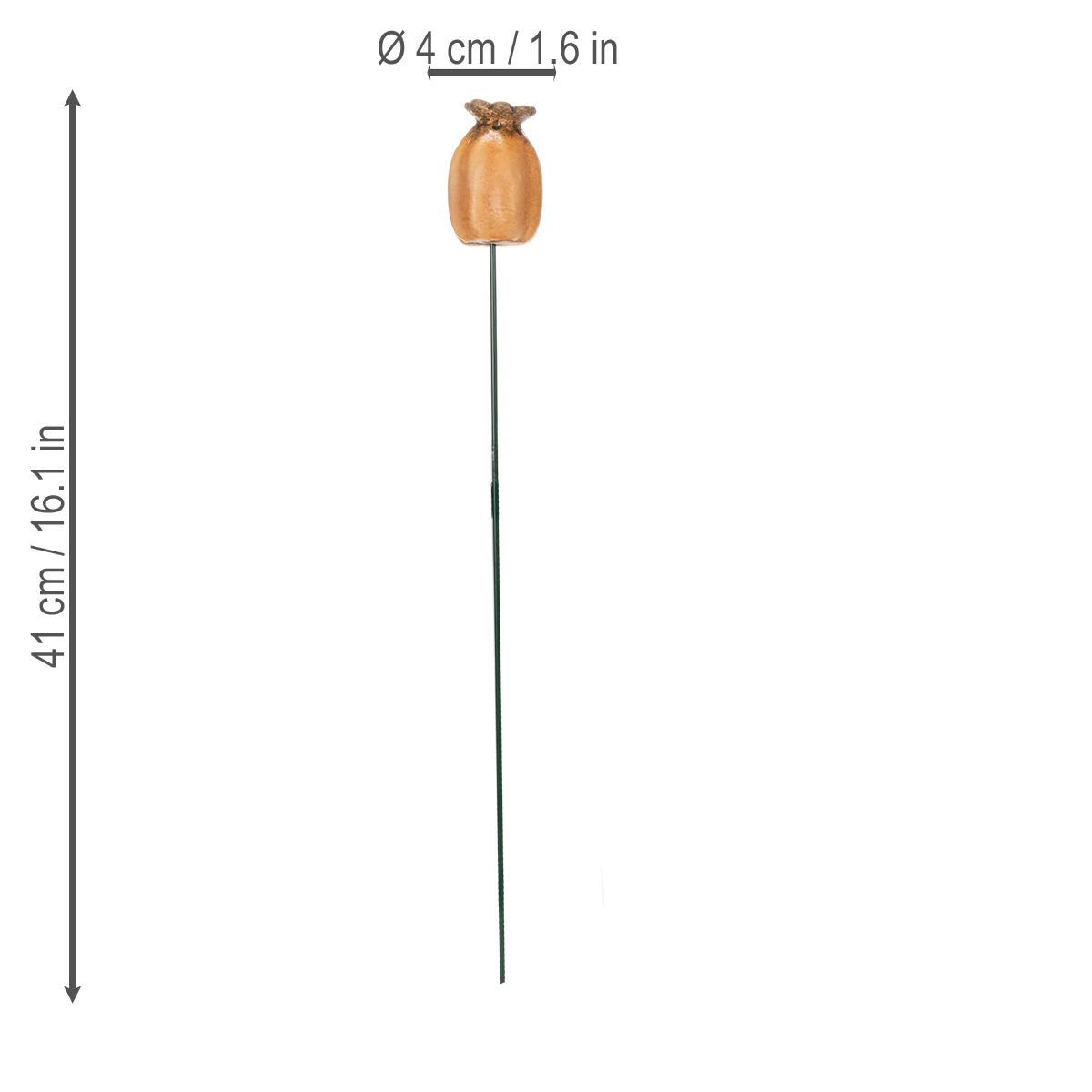 Estaca de jardim exclusiva em formato de cápsula de papoula – elegante e versátil.