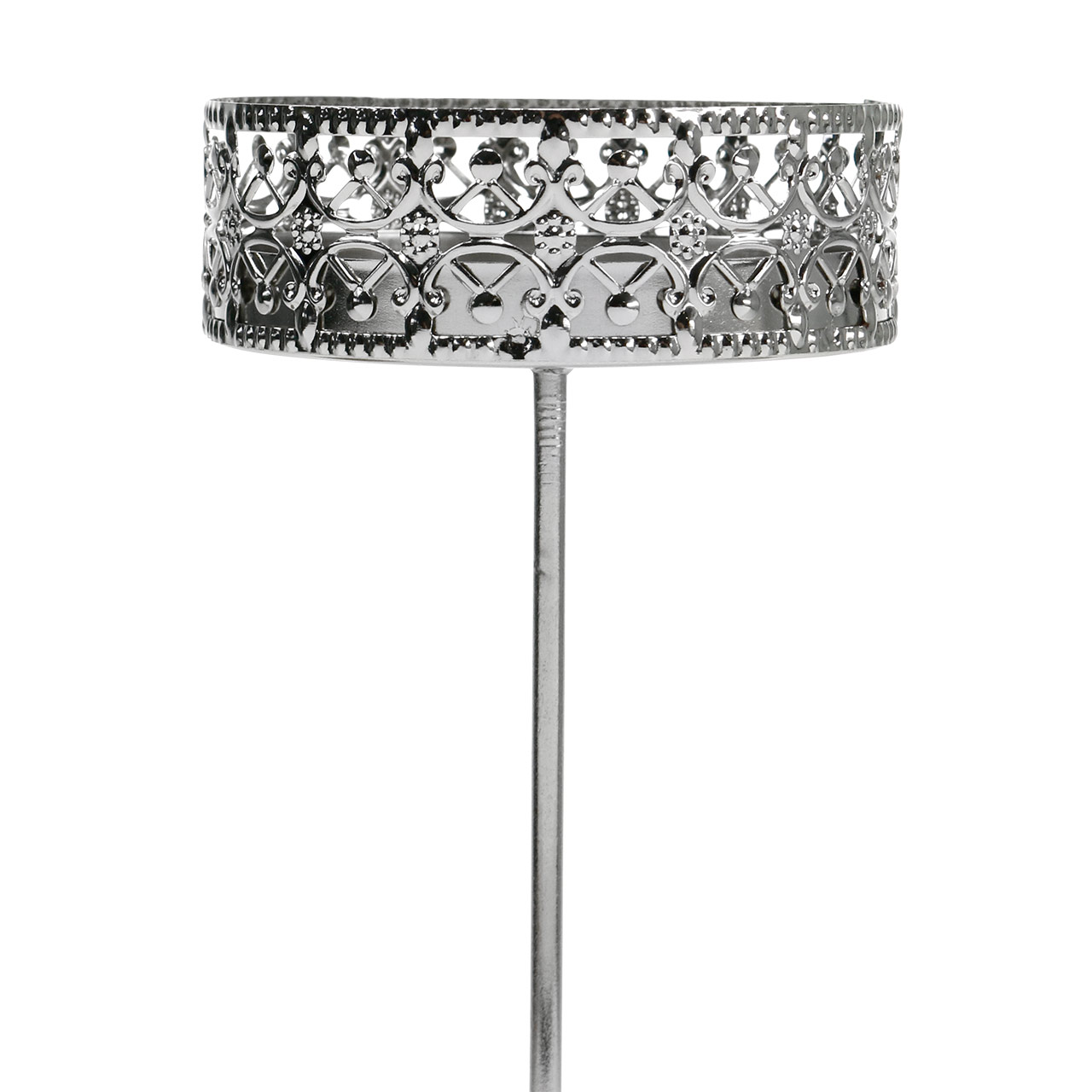 Cada um dos castiçais prateados tem um espigão estável e bastante longo, com o qual pode ser facilmente inserido em diferentes superfícies. Seja para arranjos de flores em uma festa no jardim ou como um elemento decorativo romântico em um casamento, os lindos suportes para velas em estilo vintage oferecem muitos usos possíveis.