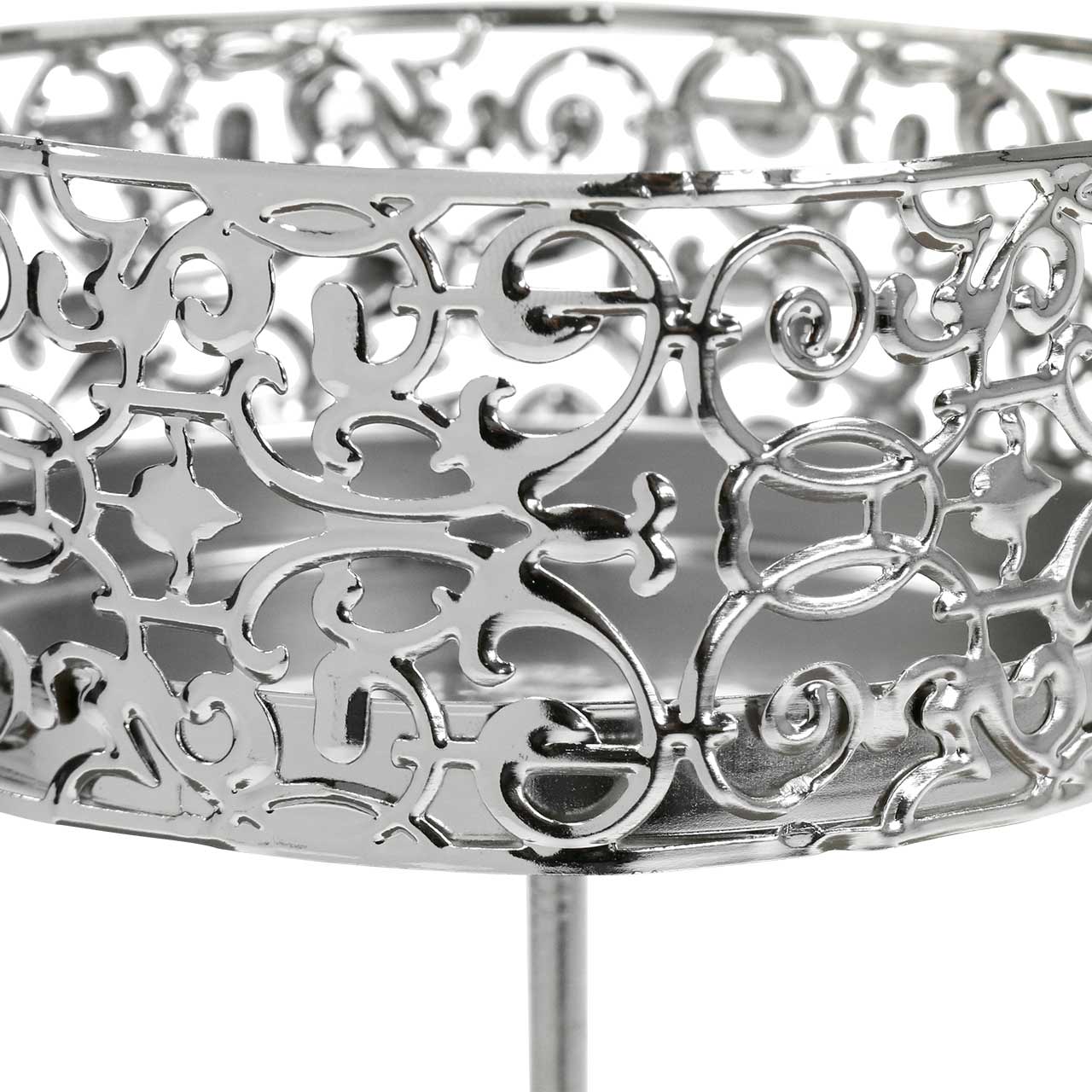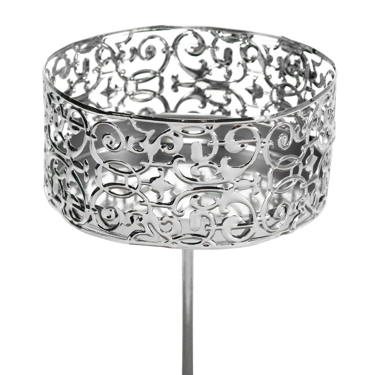 O castiçal floral é adequado para velas pilares e grandes lâmpadas de chá de até 8,5 centímetros de diâmetro. As velas LED com cera real também ficam bem nos castiçais de prata.