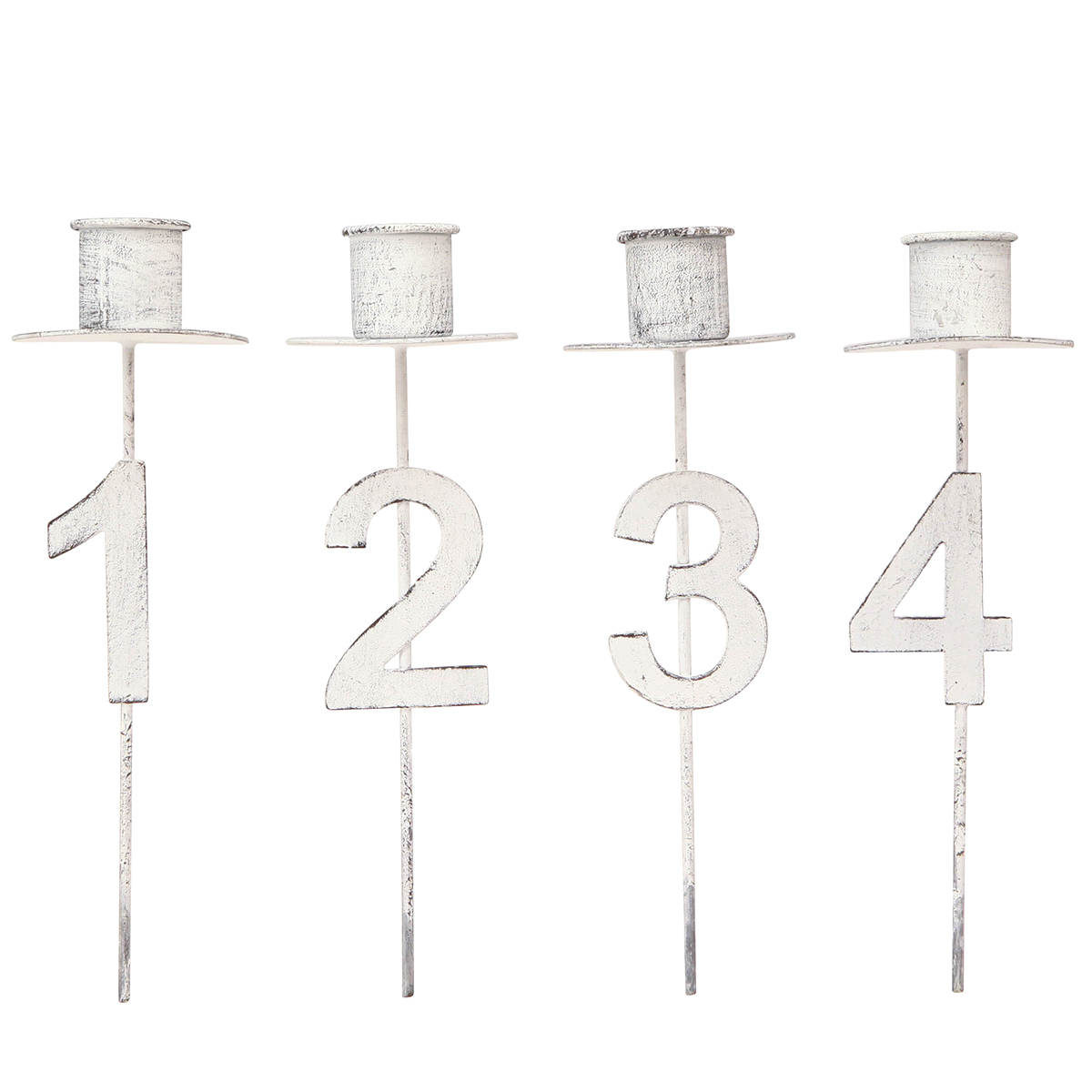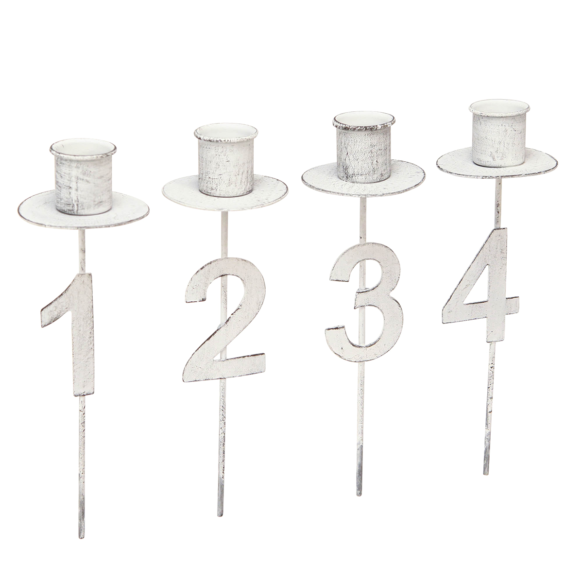 Castiçal Advento com espinho e números branco Alt.11cm 4 unidades