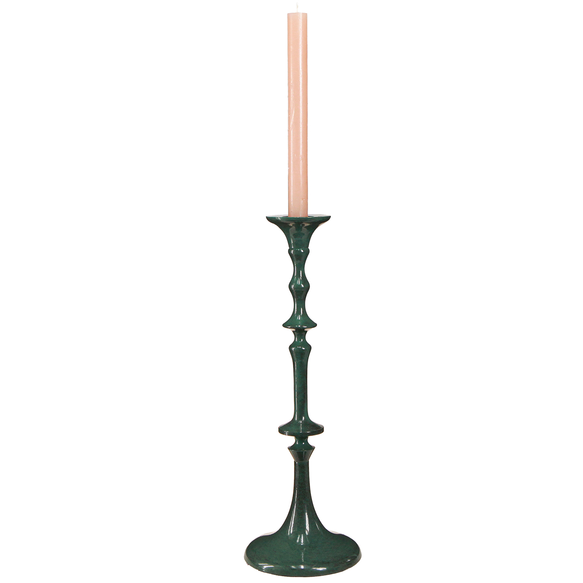 Descubra o charme elegante e moderno do castiçal alto em metal na cor verde, que combina perfeitamente a estética da cerâmica com a robustez do metal. Com uma altura impressionante de aproximadamente 38 cm e um design elegante de inspiração vintage, este castiçal será o ponto focal festivo perfeito na sua sala de estar.