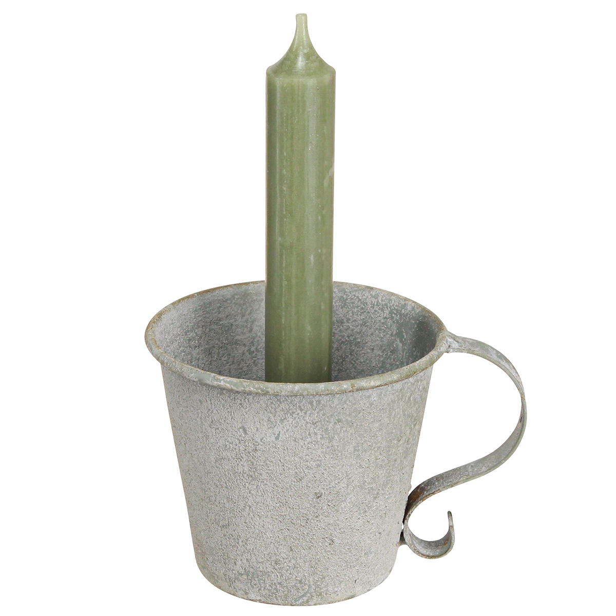 Encante os seus espaços com um toque de nostalgia graças ao nosso castiçal cónico cinzento de estilo vintage. Os dois castiçais impressionam pelo formato de xícara e pelo elaborado acabamento antigo em cinza e branco, que foi refinado com detalhes enferrujados. Seja como decoração de mesa festiva ou como decoração elegante de peitoril de janela - este castiçal em forma de xícara aparentemente antiga com alça dá detalhes elegantes em qualquer ambiente.