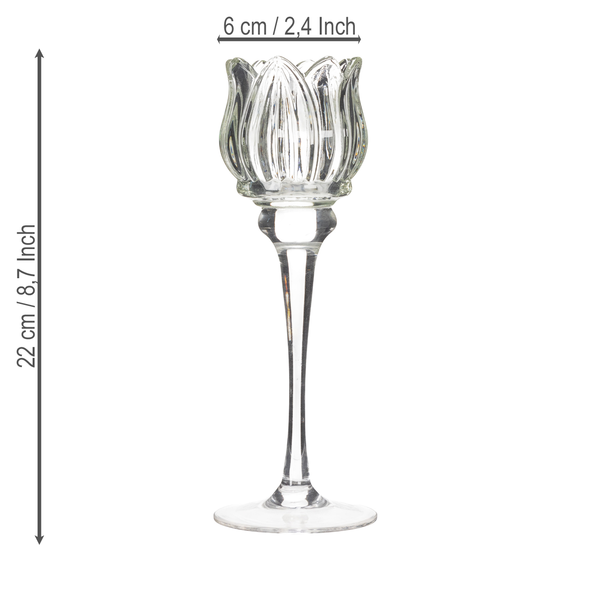 Quantas vezes você já desejou que a decoração da sua mesa fosse absolutamente deslumbrante? Seja para uma recepção de casamento, um jantar romântico ou a sua próxima festa, este castiçal de vidro em formato de flor é um verdadeiro destaque! Com sua delicada transparência e elegante altura de 22 cm, ele cria uma atmosfera que valoriza qualquer evento. Um castiçal de vidro dificilmente pode ser mais elegante e decorativo.
