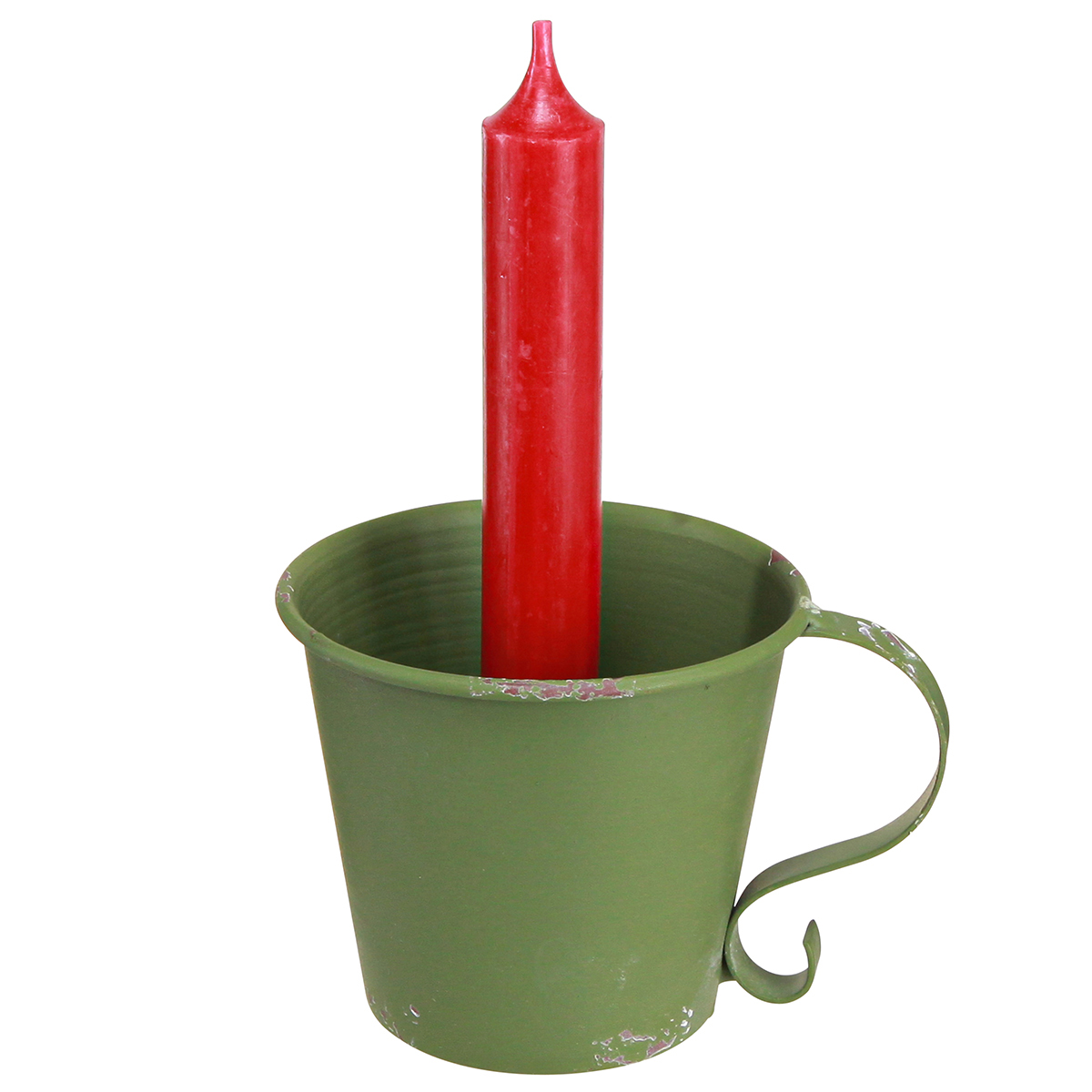 Castiçal em bastão copo vintage decoração de metal verde Ø9,5cm Alt.8cm 3 unidades