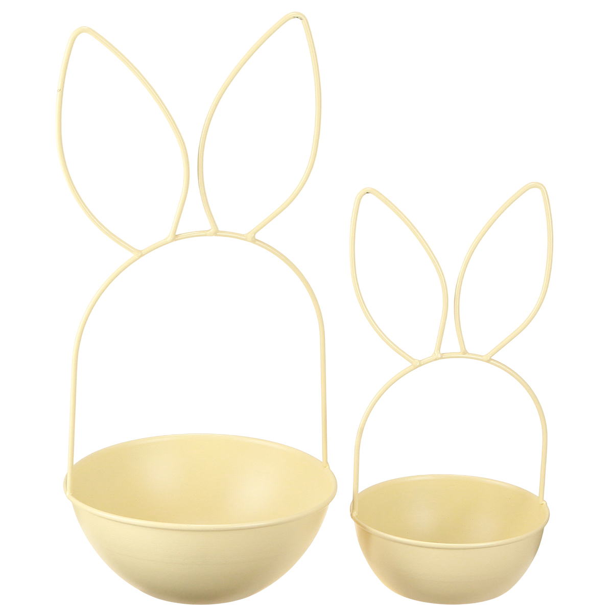 Esta cesta de Páscoa em um tom amarelo vibrante, feita de metal resistente, é uma verdadeira joia entre as decorações de Páscoa. Com suas orelhas de coelho características, ela combina design contemporâneo com a leveza da primavera. O conjunto é composto por duas cestas de tamanhos diferentes, perfeitamente coordenadas para criar uma composição harmoniosa. As linhas suaves e elegantes e o design delicado das orelhas tornam essas cestas acessórios decorativos versáteis que se integram perfeitamente a diversos estilos de interiores: do clássico rústico ao minimalismo moderno.