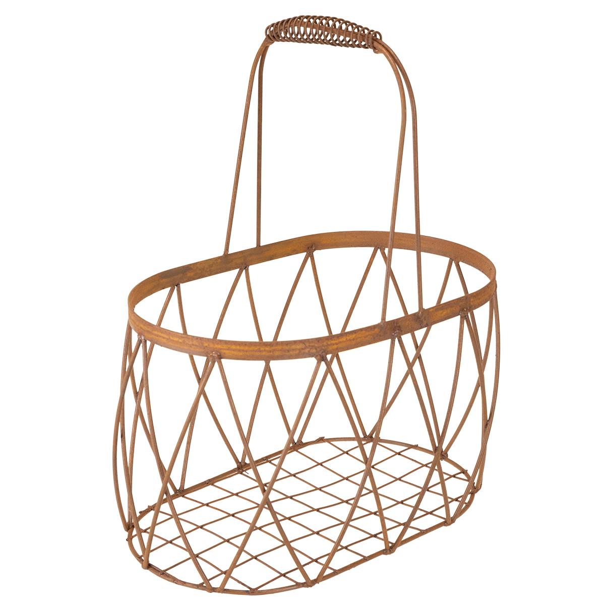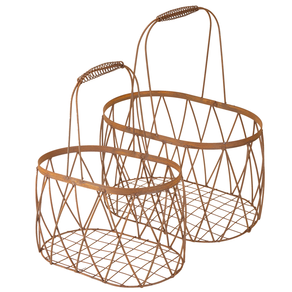 Cesto oval de arame com alça, decoração de jardim, acabamento enferrujado, 30/25 cm, conjunto de 2