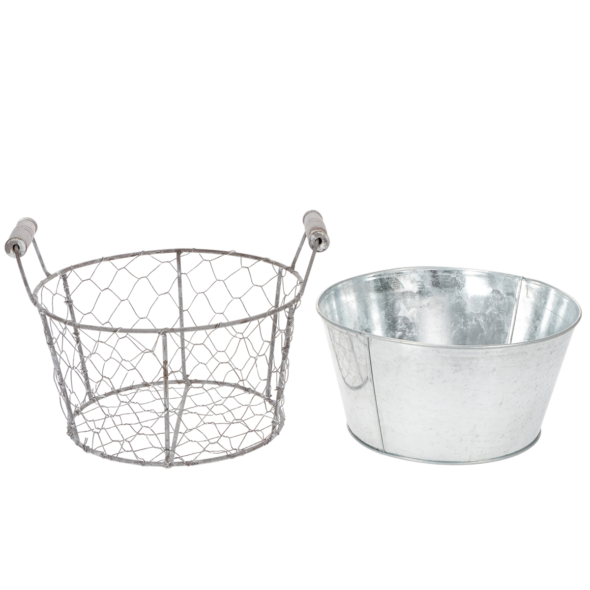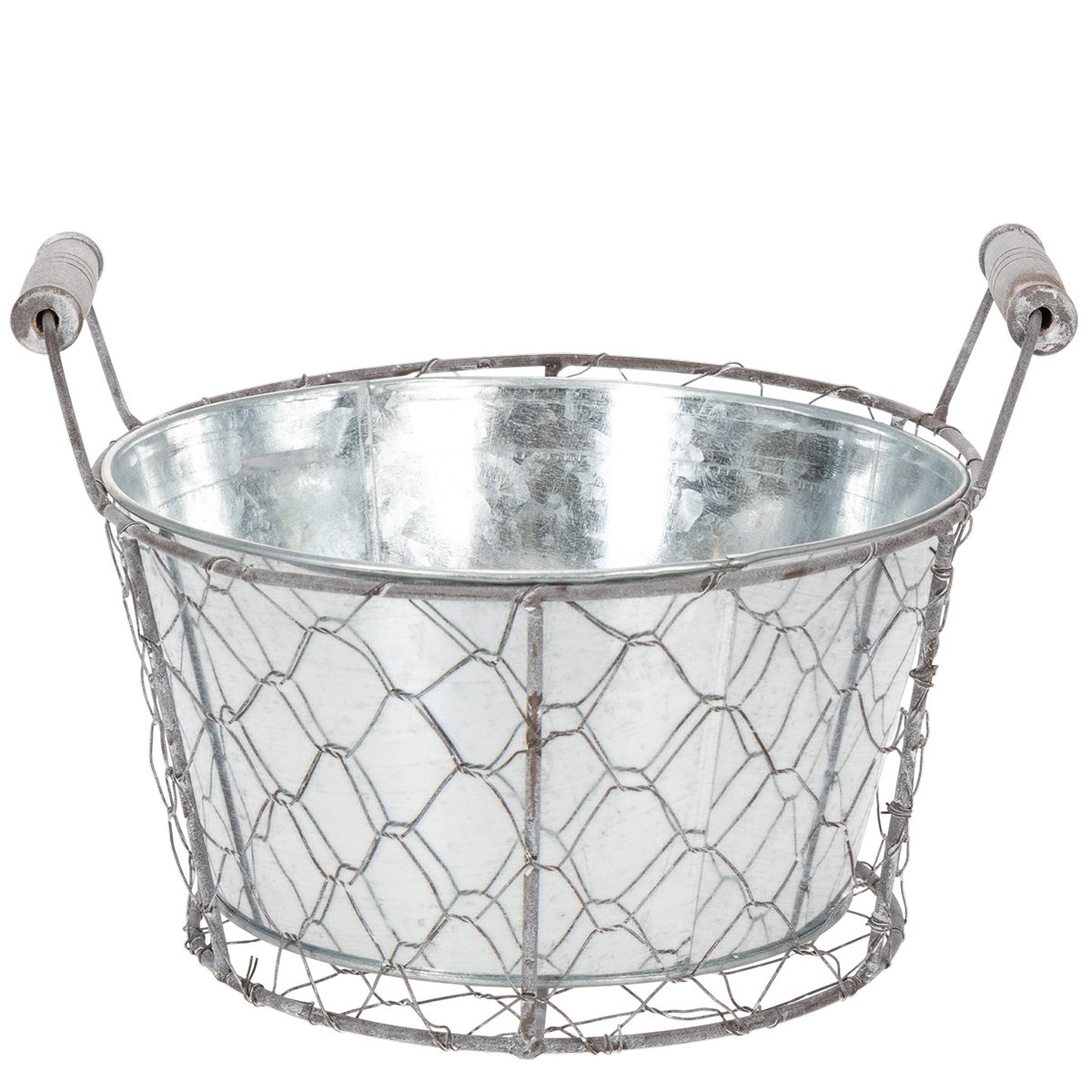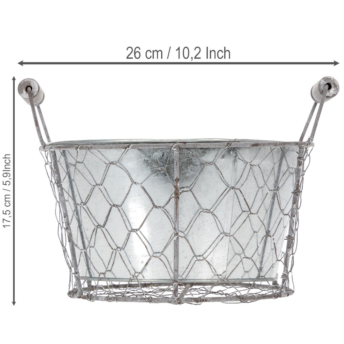 Cesto para plantas com divisórias, cesto de arame, floreira, prata primavera, branco lavado, estilo shabby chic, Ø22cm A17,5cm