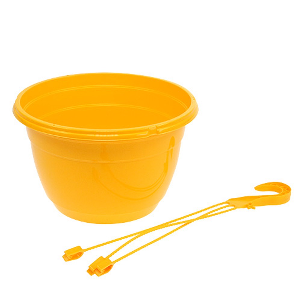 O cesto suspenso amarelo feito de plástico leve mas durável tem um diâmetro externo de cerca de 25 centímetros, um diâmetro interno de cerca de 23 centímetros e um diâmetro de base de cerca de 15 centímetros. O vaso de flores em si tem cerca de 15,5 centímetros de altura e o comprimento total é de cerca de 50 centímetros. Observe que o cesto suspenso é entregue sem pires e, portanto, só é adequado para uso ao ar livre.