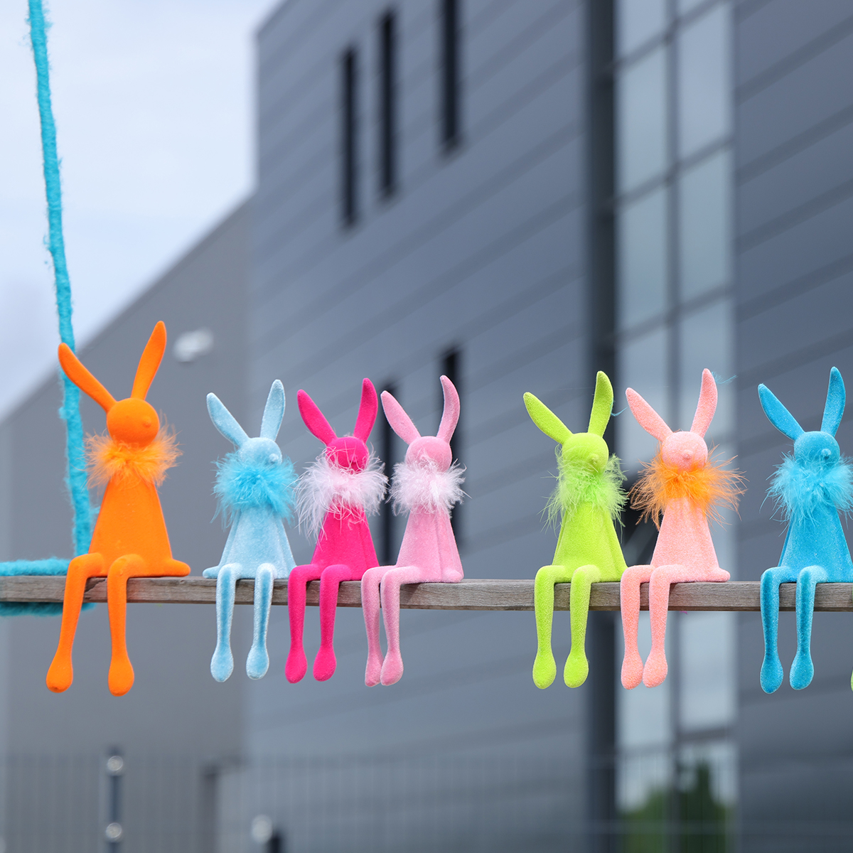 Esses coelhinhos adoráveis são perfeitos como decoração de Páscoa para a sala de estar, especialmente se você quiser decorar o parapeito da janela ou uma cômoda. Seu formato que permite que fiquem em pé em prateleiras os deixa charmosamente empoleirados na beira de diversas superfícies, quase como se estivessem olhando para o jardim. E suas pernas robustas garantem que fiquem firmes. Seja como uma decoração criativa para a mesa de Páscoa ou como um enfeite divertido no quarto de uma criança, essas figuras são versáteis.