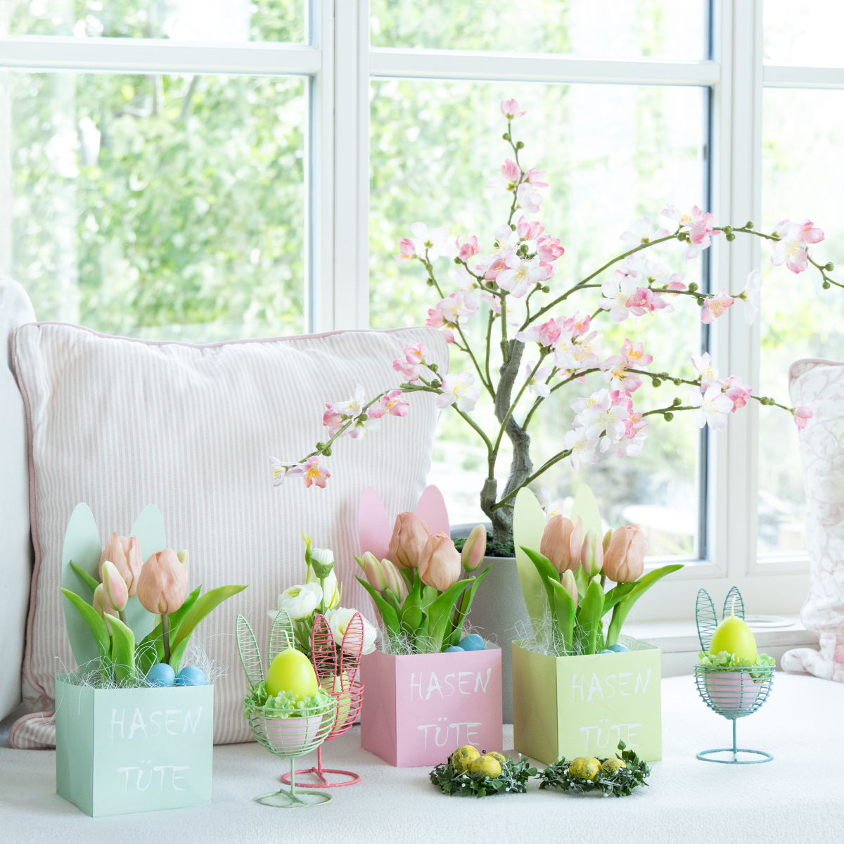A Páscoa, o despertar da primavera – a oportunidade perfeita para criar uma atmosfera moderna e fresca em casa. Se você ainda procura uma decoração única que não só embeleze a Páscoa, mas que também seja versátil, então você vai adorar estes coelhinhos de arame! Com seus delicados tons pastel de amarelo, rosa e verde, eles chamam a atenção. Seja na mesa de Páscoa, no parapeito da janela ou como uma embalagem primaveril para pequenas surpresas, estes delicados coelhinhos de metal oferecem inúmeras possibilidades de decoração. Decorações de Páscoa com um toque especial: modernas, leves e adoráveis ao mesmo tempo. Afinal, quem disse que os coelhinhos da Páscoa precisam ser tradicionalmente de cerâmica ou pelúcia? O visual de arame confere à sua casa um toque de leveza e criatividade – perfeito para minimalistas ou fãs de design de interiores escandinavo!