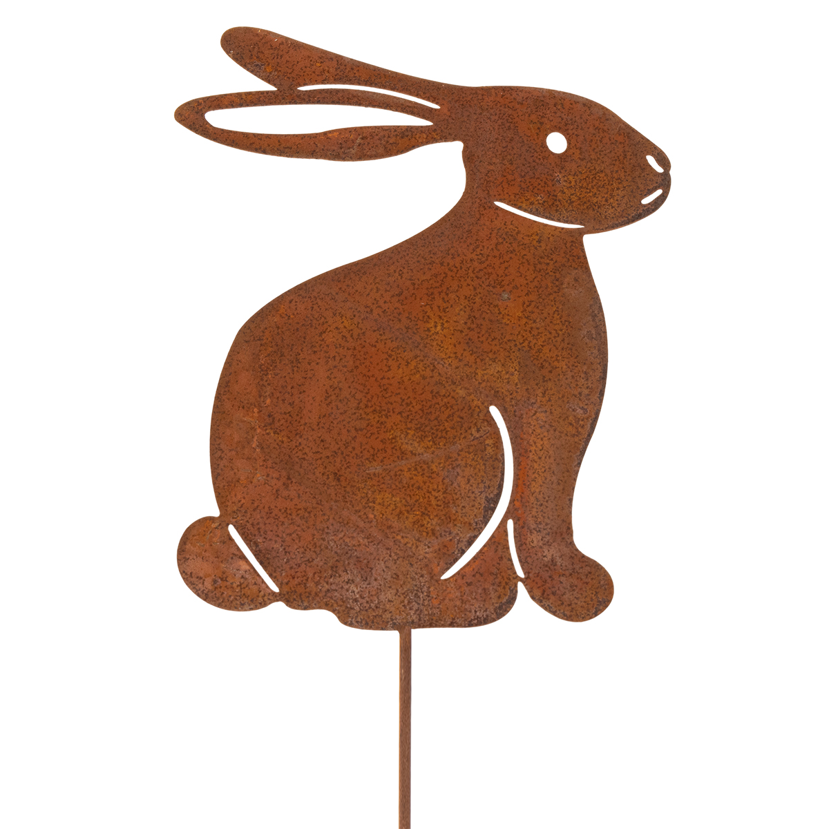 O coelho de jardim para estaca é feito de metal robusto com uma pátina de ferrugem natural. Isso não só lhe confere uma aparência agradavelmente aconchegante, como também o torna particularmente resistente às intempéries e durável. Com 100 cm de altura e 23 cm de largura, o coelho fica no topo de uma estaca resistente que pode ser facilmente inserida no solo ou em outras superfícies. Graças ao seu aspecto enferrujado, ele é especialmente adequado para jardins com um toque rústico ou vintage.