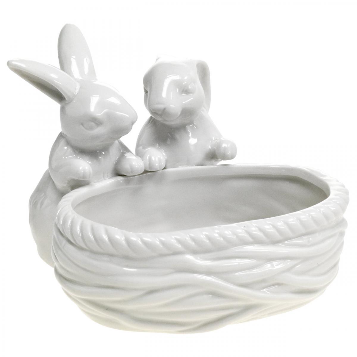 Coelhos com ninho, decoração de mesa, ninho de Páscoa, decoração em porcelana, tigela decorativa branca L15cm A11cm