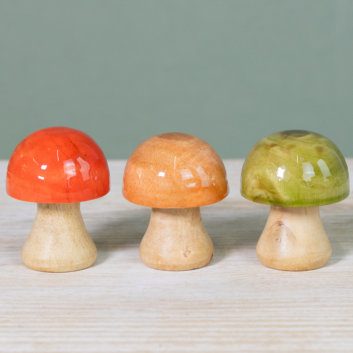 Cogumelos de madeira, decoração de outono, cogumelos, verde, vermelho, laranja, 6,5 cm de altura, 9 peças.