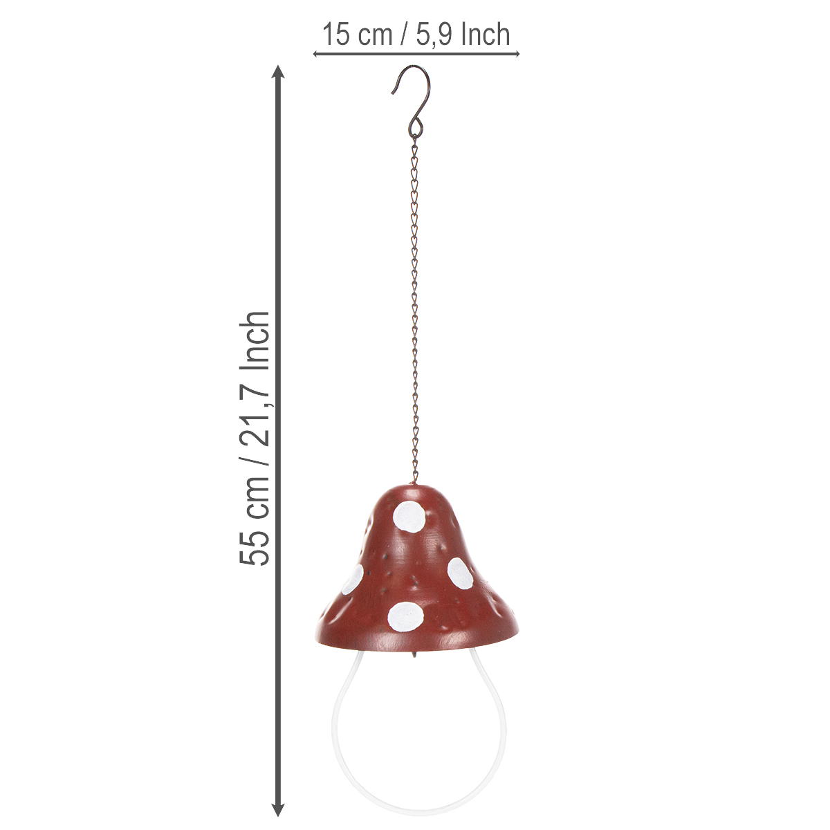 Nome do produto: Comedouro de metal, com desenho de amanita muscaria, para pendurar, vermelho e branco, 25,5 cm
