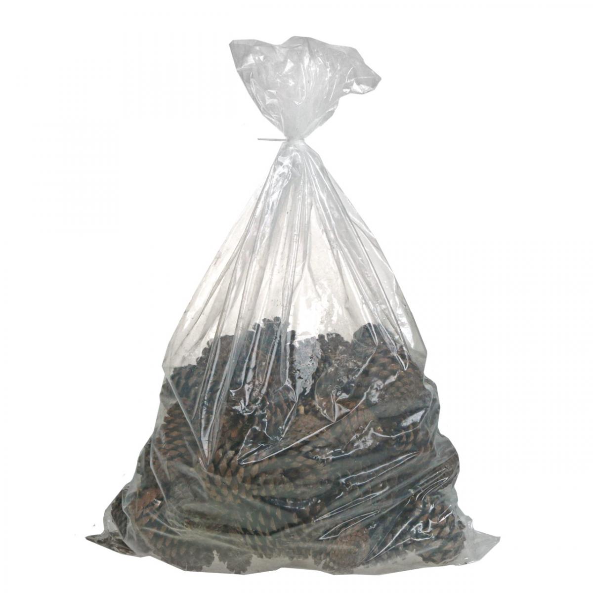 Os cones decorativos de cores naturais são fornecidos em um saco plástico de cerca de 50 em tamanhos diferentes.