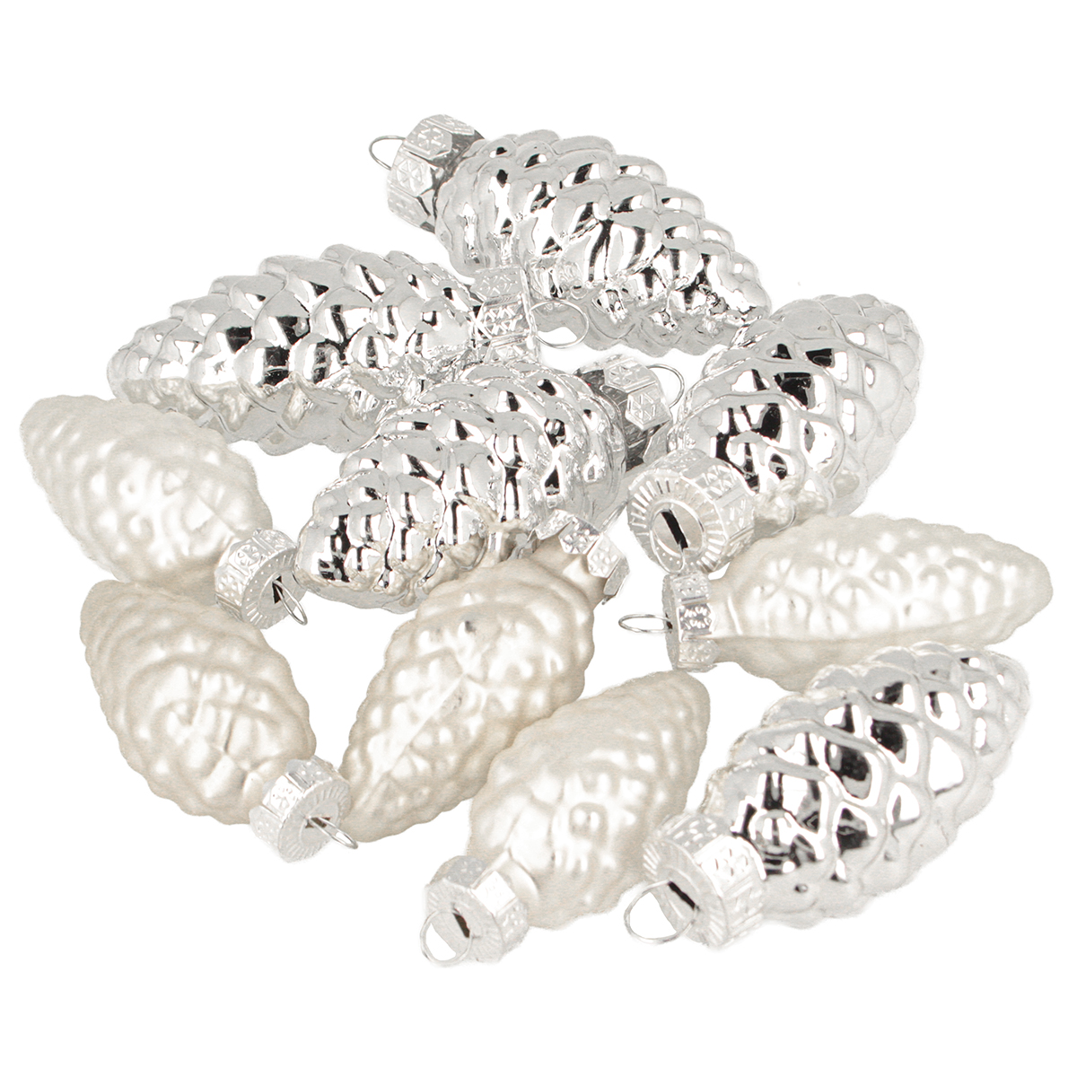 Cones mix de vidro prata 5cm 14 unidades