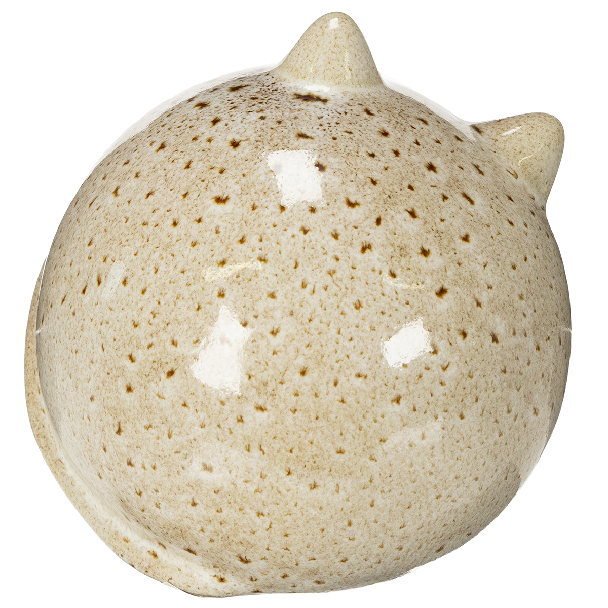 Esta estatueta de gato em cerâmica não é apenas um deleite para os olhos, mas também incrivelmente versátil. Seu design moderno e arredondado, aliado ao acabamento de alta qualidade, exala uma elegância discreta. Cada estatueta mede 13 cm de altura, largura e comprimento, sendo compacta o suficiente para caber em qualquer canto sem ocupar muito espaço. O esmalte bege neutro permite uma combinação fácil com outras decorações.