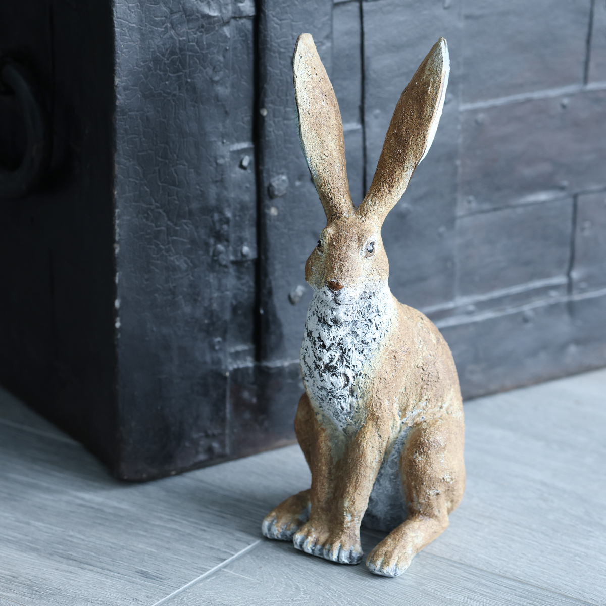 Elegância natural: Estatueta decorativa de coelho com 32 cm de detalhes.