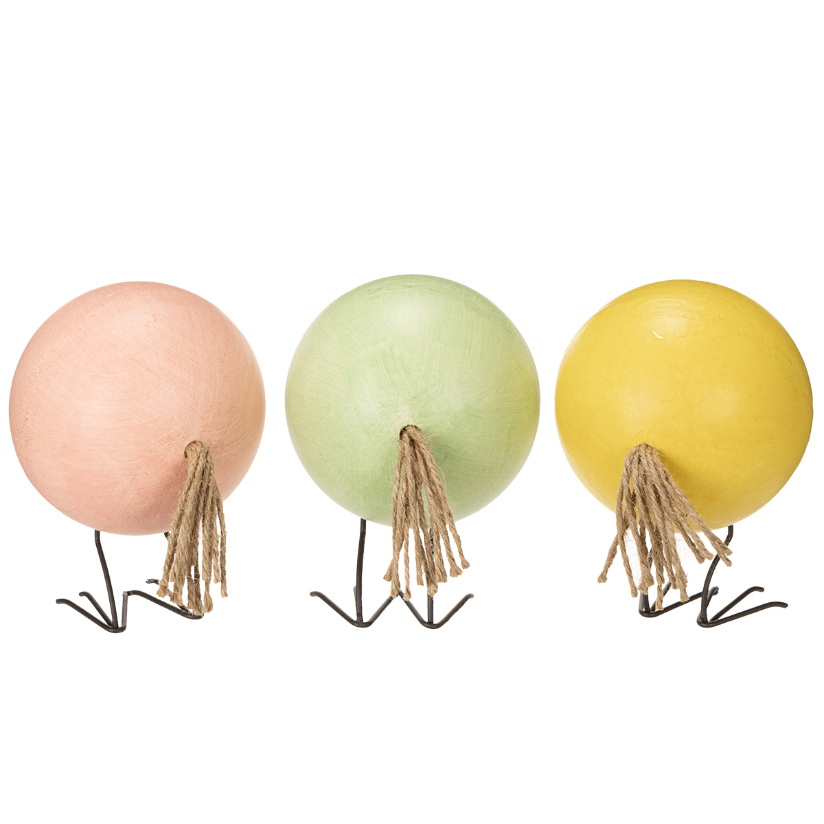 Conjunto de 3 pintinhos decorativos, um enfeite alegre para a primavera e a Páscoa, 12 cm de altura.